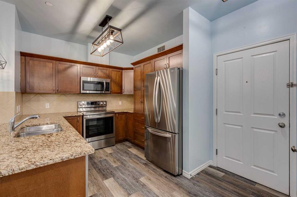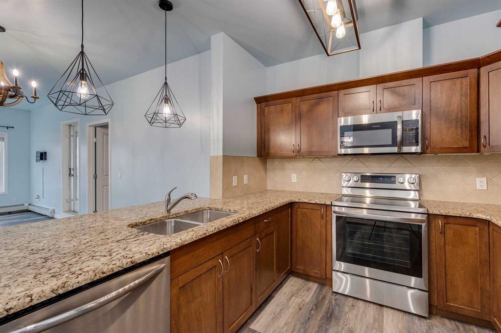 Custom closets in main bedroom, Painted ceiling in main living space, Luxury vinyl plank flooring, Custom window blinds. The stylish kitchen boasts newer stainless steel appliances and granite countertops and raised breakfast bar overlooking the dining room, living room and small office space. The living room is a great place to relax and has a french door to 1 of 2 large balconies. This is an ideal floorplan for families or roommates. The Bedrooms are set apart for privacy; the large master suite offers an ensuite bath, while the second bedroom is bright, has access to the 2nd large and private balcony and is steps away from another full bathroom. 2 parking stalls are included ( 1 is titled, the other is assigned) and you have access to an assigned storage locker in the building. Walking distance to a variety of nearby shops & restaurants. Shows Well!