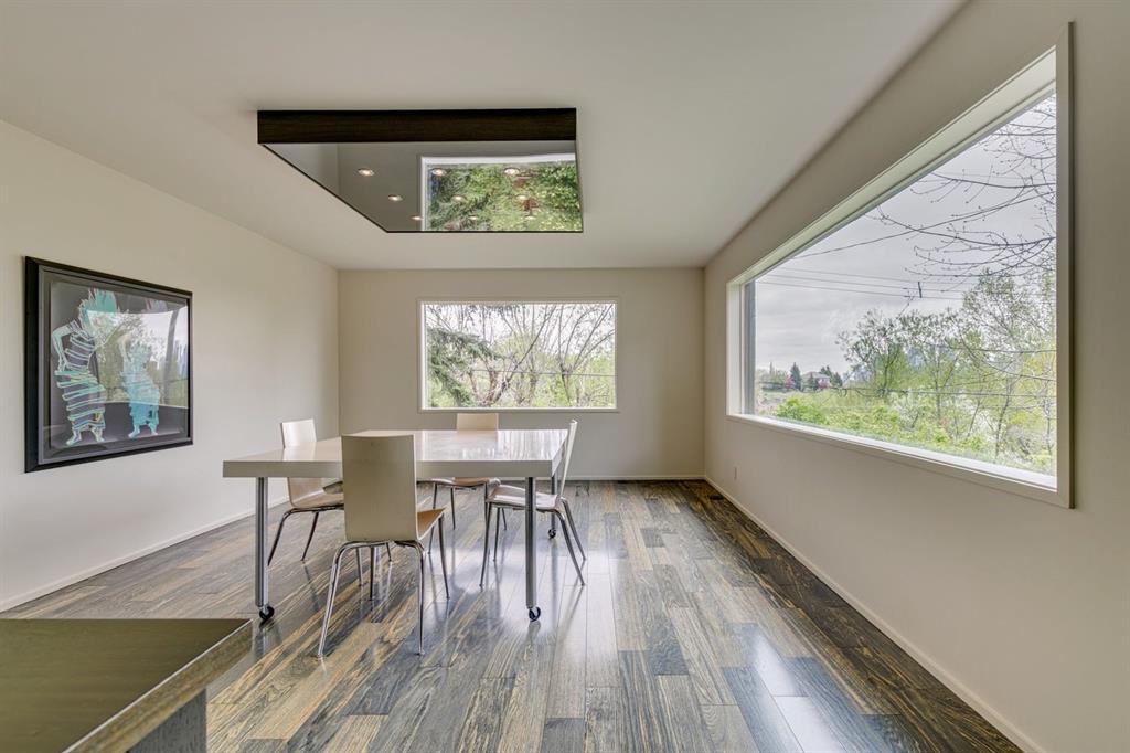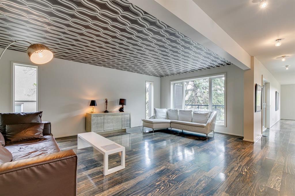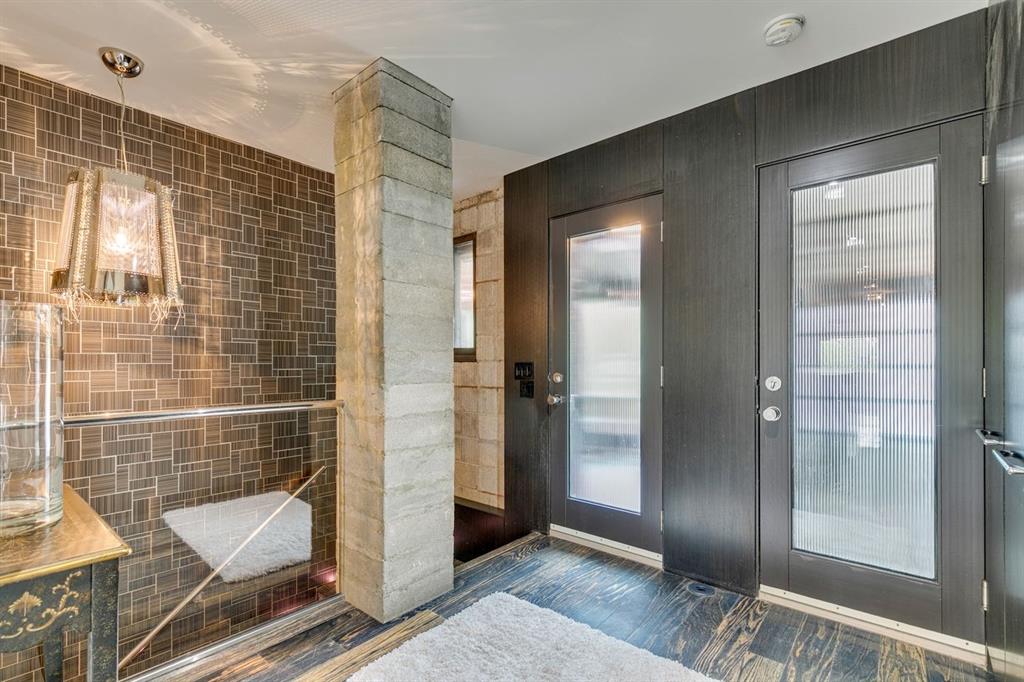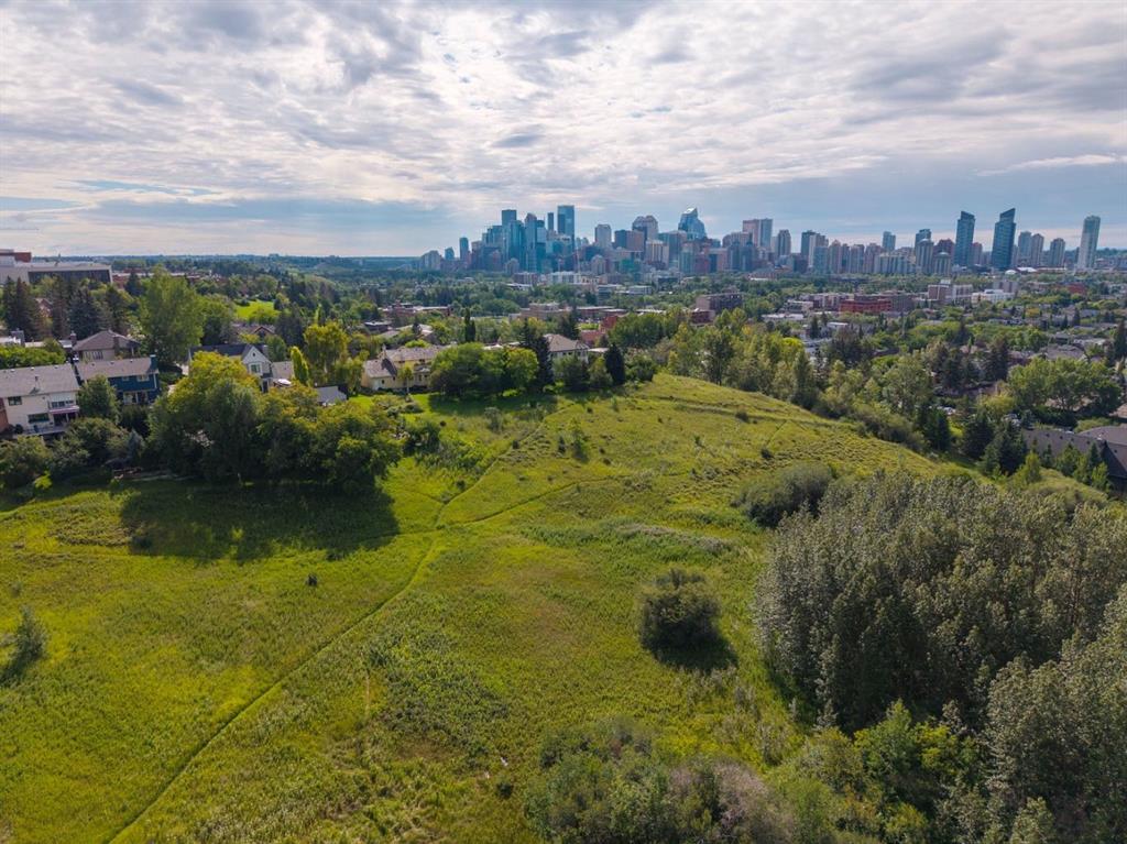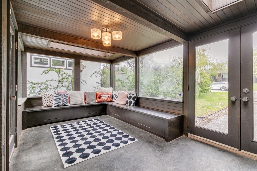 A masterful modern renovation infused with the timeless elegance of 1950s design. Perched on a coveted ridge lot in prestigious Briar Hill, this exceptional hillside walk-out captivates from the moment you arrive. A lush canopy of mature trees and sculpted landscaping welcomes you, setting the tone for what lies beyond. Step into an expansive sunroom bathed in natural light, with soaring skylights and walls of glass that blur the line between indoors and nature. It's the perfect sanctuary to unwind—whether you're sipping a fine wine or indulging in a favourite novel, enveloped in serene beauty. Step into a grand foyer featuring sculptural concrete wall elements and a sleek glass-railed staircase that set the tone for sophisticated living. The front den offers a quiet retreat, while the expansive living room seamlessly flows toward the rear deck, perfectly framed by mature evergreens that provide unparalleled privacy. Crafted for both style and function, the kitchen and dining areas are an entertainer’s dream. The kitchen exudes contemporary glamour with pristine white cabinetry, a mirrored pantry and backsplash, and mid-century lighting. An oversized eat-up island anchors the space, offering abundant storage, while a suite of top-tier appliances, including a Viking wall oven, Miele microwave and dishwasher, a Sub-Zero refrigerator, and a Gaggenau cooktop complete the look. The adjoining dining room is truly impressive in scale and design, offering sweeping views of the Downtown skyline, a stunning backdrop for unforgettable gatherings. Descending to the lower level, you're greeted by rich hardwood floors and subtle stair lighting that create an inviting ambiance. This level is thoughtfully designed as a private retreat, with dedicated spaces for work and rest. The sophisticated home office is enclosed with smoked glass doors and enhanced by custom built-in cabinetry, while a striking feature wall conceals cleverly integrated storage. Three generously sized bedrooms are tucked away on this level, along with a beautifully appointed full bathroom. The primary suite is set apart for ultimate seclusion, enveloped by expansive windows that frame the surrounding landscape. Indulge in a lavish ensuite featuring a deep soaker tub, a sleek glass enclosed shower, and a fully customized walk-in closet—crafted for both luxury and functionality. For the gardening enthusiast, the secluded rear and side yards offer a canvas to create your own private outdoor sanctuary; lush, serene, and tailored to your vision. Thoughtfully integrated into the design, an expansive under deck storage area provides a secure and discreet solution for all your seasonal essentials, ensuring both elegance and practicality are maintained. This Homs is truly in an unbeatable location ideally situated within walking distance to multiple recreational facilities, public transit, the downtown core, Kensington, SAIT, schools, and both the Foothills and The Alberta Children's Hospital.