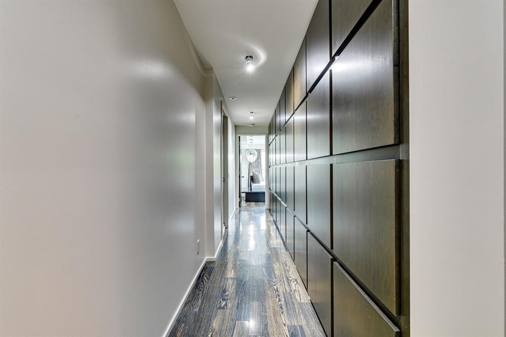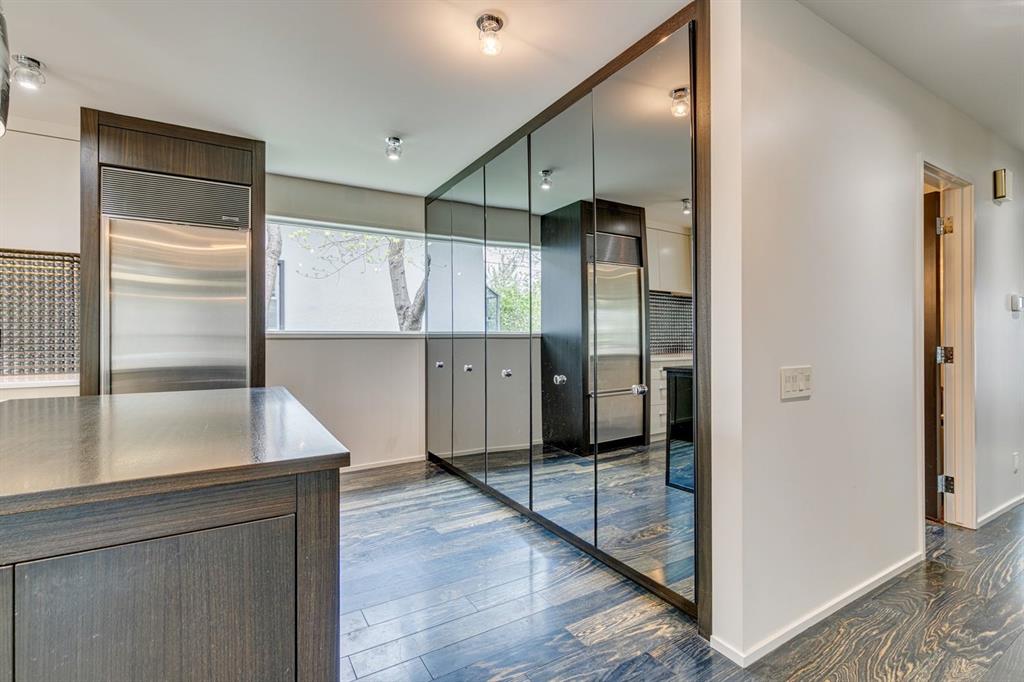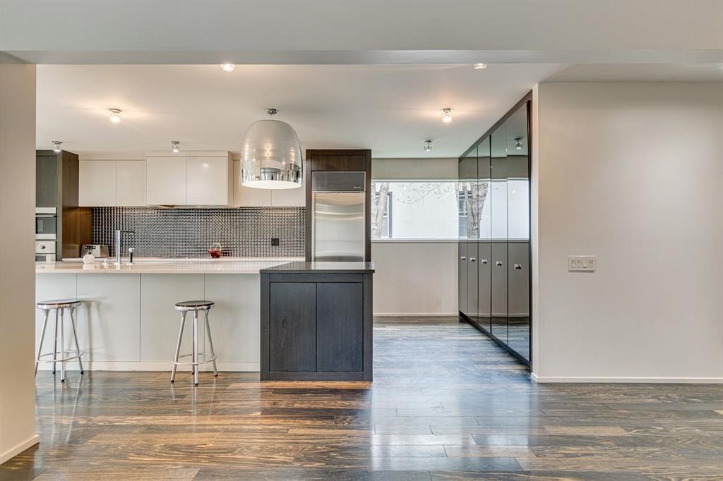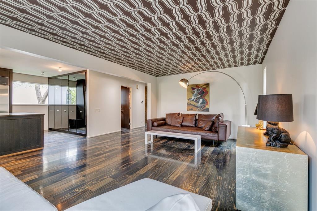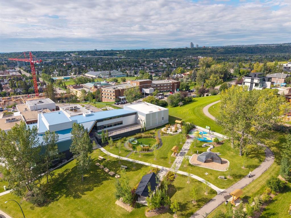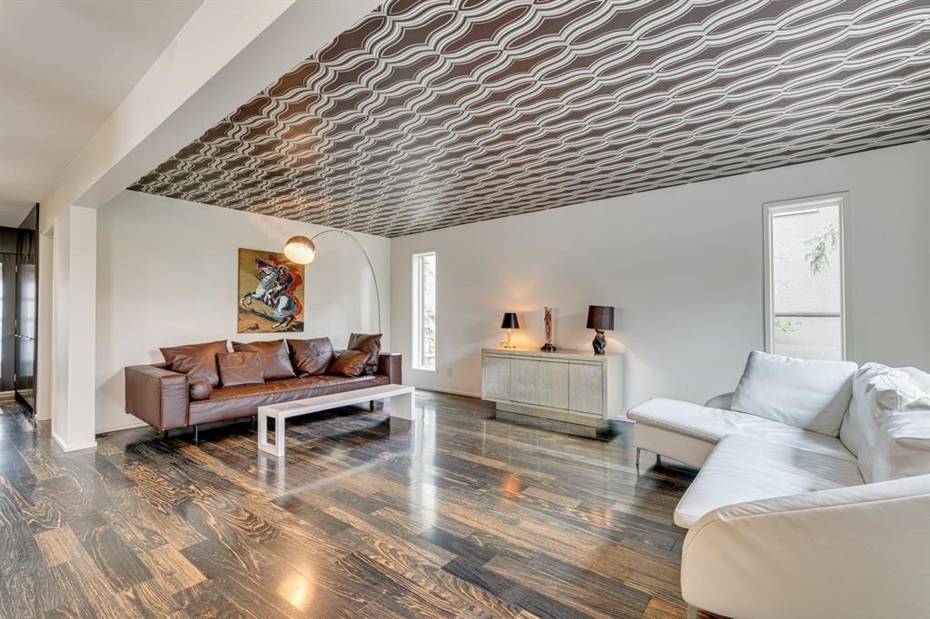 A masterful modern renovation infused with the timeless elegance of 1950s design. Perched on a coveted ridge lot in prestigious Briar Hill, this exceptional hillside walk-out captivates from the moment you arrive. A lush canopy of mature trees and sculpted landscaping welcomes you, setting the tone for what lies beyond. Step into an expansive sunroom bathed in natural light, with soaring skylights and walls of glass that blur the line between indoors and nature. It's the perfect sanctuary to unwind—whether you're sipping a fine wine or indulging in a favourite novel, enveloped in serene beauty. Step into a grand foyer featuring sculptural concrete wall elements and a sleek glass-railed staircase that set the tone for sophisticated living. The front den offers a quiet retreat, while the expansive living room seamlessly flows toward the rear deck, perfectly framed by mature evergreens that provide unparalleled privacy. Crafted for both style and function, the kitchen and dining areas are an entertainer’s dream. The kitchen exudes contemporary glamour with pristine white cabinetry, a mirrored pantry and backsplash, and mid-century lighting. An oversized eat-up island anchors the space, offering abundant storage, while a suite of top-tier appliances, including a Viking wall oven, Miele microwave and dishwasher, a Sub-Zero refrigerator, and a Gaggenau cooktop complete the look. The adjoining dining room is truly impressive in scale and design, offering sweeping views of the Downtown skyline, a stunning backdrop for unforgettable gatherings. Descending to the lower level, you're greeted by rich hardwood floors and subtle stair lighting that create an inviting ambiance. This level is thoughtfully designed as a private retreat, with dedicated spaces for work and rest. The sophisticated home office is enclosed with smoked glass doors and enhanced by custom built-in cabinetry, while a striking feature wall conceals cleverly integrated storage. Three generously sized bedrooms are tucked away on this level, along with a beautifully appointed full bathroom. The primary suite is set apart for ultimate seclusion, enveloped by expansive windows that frame the surrounding landscape. Indulge in a lavish ensuite featuring a deep soaker tub, a sleek glass enclosed shower, and a fully customized walk-in closet—crafted for both luxury and functionality. For the gardening enthusiast, the secluded rear and side yards offer a canvas to create your own private outdoor sanctuary; lush, serene, and tailored to your vision. Thoughtfully integrated into the design, an expansive under deck storage area provides a secure and discreet solution for all your seasonal essentials, ensuring both elegance and practicality are maintained. This Homs is truly in an unbeatable location ideally situated within walking distance to multiple recreational facilities, public transit, the downtown core, Kensington, SAIT, schools, and both the Foothills and The Alberta Children's Hospital.
