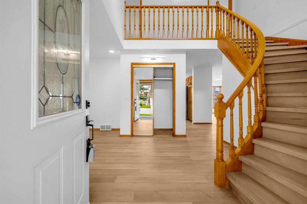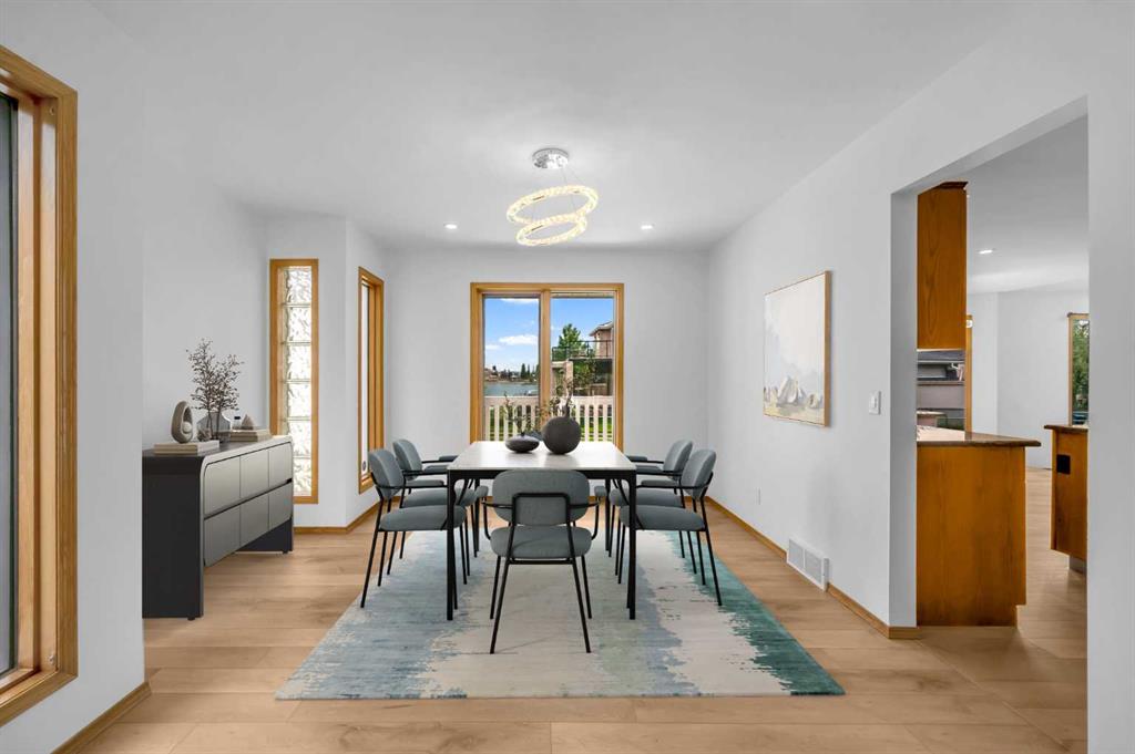 Welcome to an exceptional opportunity to own a fully renovated, luxury lakefront home in one of Calgary’s most exclusive and sought-after communities—Coral Springs. Nestled on the tranquil shores of the private Coral Springs Lake, this stunning 4-bedroom, 2.5-bathroom residence offers over 2,450 sq ft of beautifully curated living space, where modern design meets peaceful waterfront living. From the moment you arrive, this home makes a striking impression with its serene lakefront setting, elegant architectural details, and inviting curb appeal. Step inside and you’re immediately greeted by a bright, airy, open-concept floor plan designed to maximize natural light and showcase the breathtaking lake views visible from nearly every room. The main level features soaring ceilings, contemporary finishes, and a flowing layout that seamlessly connects the spacious living room, formal dining area, and a fully updated kitchen—creating the perfect environment for entertaining or enjoying quiet family evenings. The show-stopping spiral staircase acts as a visual centerpiece, guiding you through the home’s elegant layout. The newly installed luxury vinyl flooring throughout enhances the sleek, modern aesthetic while offering warmth, comfort, and durability for everyday life. Fresh, neutral-toned paint and designer light fixtures throughout the home add a cohesive sense of style and sophistication. The ceilings have been professionally flattened, removing outdated textures and creating a clean, elevated feel in every space. One of the most significant upgrades is the complete replacement of all Poly B plumbing with high-quality, durable PEX—providing peace of mind and long-term value for future homeowners. In addition, the bathrooms have been fully refreshed, including a brand-new, beautifully appointed half-bath and two tastefully updated full bathrooms. The upper level hosts four generously sized bedrooms, including a luxurious primary suite with panoramic views of the lake, large closets, and a spa-inspired ensuite. Each bedroom offers flexibility for growing families, visiting guests, or those working from home. Perhaps the most captivating aspect of this property is its unparalleled lakefront location. Whether you’re sipping your morning coffee as the sun rises over the water or enjoying quiet evenings with a glass of wine on your private shared deck, the experience of lakeside living here is unmatched. Step outside to launch your paddle boat, fish right from your backyard, or simply enjoy the sounds of nature from your own slice of paradise. This home isn’t just a place to live—it’s a lifestyle. As a resident of Coral Springs, you’ll have year-round access to a private lake and a host of exclusive amenities including swimming, boating, fishing, ice skating, and beautifully maintained walking paths.