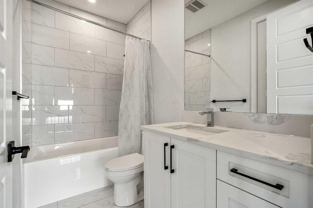 Situated on a quiet street in the highly sought-after community of Montgomery. As you enter this stunning home you will notice the abundance of natural light and that no detail was overlooked from the luxurious wide plank hardwood floors, high paint finish ceilings, 8’ solid core doors, elegant railing, in ceiling speakers and designer lights. The spacious front dining room opens to the central gourmet kitchen. This is a focal point with an expansive 16’ kitchen island, gorgeous quartz counters, a timeless herringbone tile backsplash, SS built in appliances including a gas cook top and wine fridge. All highlighted by a custom wood hood, two-tone cabinets that reach to the ceiling with glass inserts, under-cabinet lights, slow-close cabinet doors, as well as plenty of storage with additional built-in features such as spice racks and pull out details. The kitchen opens to the inviting living room with soaring 12’ ceilings, a distinctive gas fireplace with brick surrounds and built ins, plus floor to ceiling patio sliders creating a great indoor outdoor space, making this home ideal for entertaining. The sunny SOUTH backyard has a low maintenance vinyl deck and a BBQ gas line ideal for gatherings. Completing the main living area is a large mudroom with bench detail and private powder room with a full vanity. Upstairs you will find two bright well sized bedrooms, a large 4 pc bath and a convenient laundry room with plenty of storage and a sink. The primary retreat is on its own separate level creating a true oasis with a tray ceiling detail, large windows and a spacious walk in closets with built ins. The spa inspired ensuite includes heated floors, a stunning free standing tub, a massive tile shower, dual sinks with stone counters, and a private water closet. The lower level has a great rec room with a built in media center, a full wet bar including beverage fridge, floating shelves and wine racks. A 4 pc bath and fourth bedroom with a walk in closet perfect for guests or hosting gatherings. This home also offers the comforts of air conditioning, a vacu-flow rough in, plus a fully insulated and drywalled double detached garage with gas line rough in for a heater. Steps away from scenic parks, walking trails, cafes, restaurants and shopping. Schedule your private showing or view the virtual tour today.