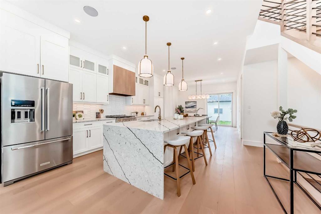 ** OPEN HOUSE: Tuesday, December 9th 3-5pm ** Welcome to 2426 53 Ave – A Perfect Blend of Modern Design and Community Living. Nestled in one of the area’s most desirable and family-friendly neighborhoods, this newly built home offers the ideal combination of style, functionality, and location. With over 1,900 sq. ft. above grade, this thoughtfully designed property features 4 bedrooms and 3.5 bathrooms, providing ample space for both everyday living and entertaining. Step inside to an open and welcoming living room complete with custom built-ins and a cozy fireplace – perfect for family gatherings or quiet evenings in. At the heart of the home is the gourmet kitchen, outfitted with full-height cabinetry, a large quartz island, high-end appliances, and sleek quartz countertops. Adjacent to the dining area, sliding patio doors open to a sunny back deck, seamlessly blending indoor and outdoor living. The main floor also includes a practical mudroom and a stylish powder room for added convenience. Upstairs, the primary suite offers a true retreat with a vaulted ceiling, feature wall, walk-in closet, and a spa-inspired ensuite complete with soaker tub, dual vanities, and a walk-in shower. Two additional bedrooms, a full bathroom, laundry room, and built-in desk make the upper level as functional as it is beautiful. The fully finished basement offers even more living space, featuring a second living room with built-ins and electric fireplace, wet bar, home gym, fourth bedroom with walk-in closet, and a full bathroom – perfect for guests, teens, or extended family. Outside, enjoy a landscaped and fenced backyard with space to relax or entertain, and a double detached garage for secure parking and additional storage. Located in a vibrant community with parks, schools, and amenities nearby, this home also offers quick and easy access to Crowchild Trail—making your daily commute or weekend plans stress-free. Measurements and photos are from unit next door (2424 53 Ave SW).