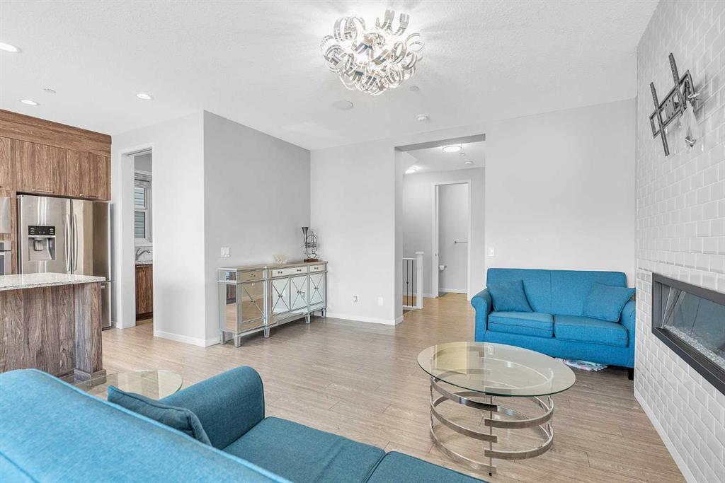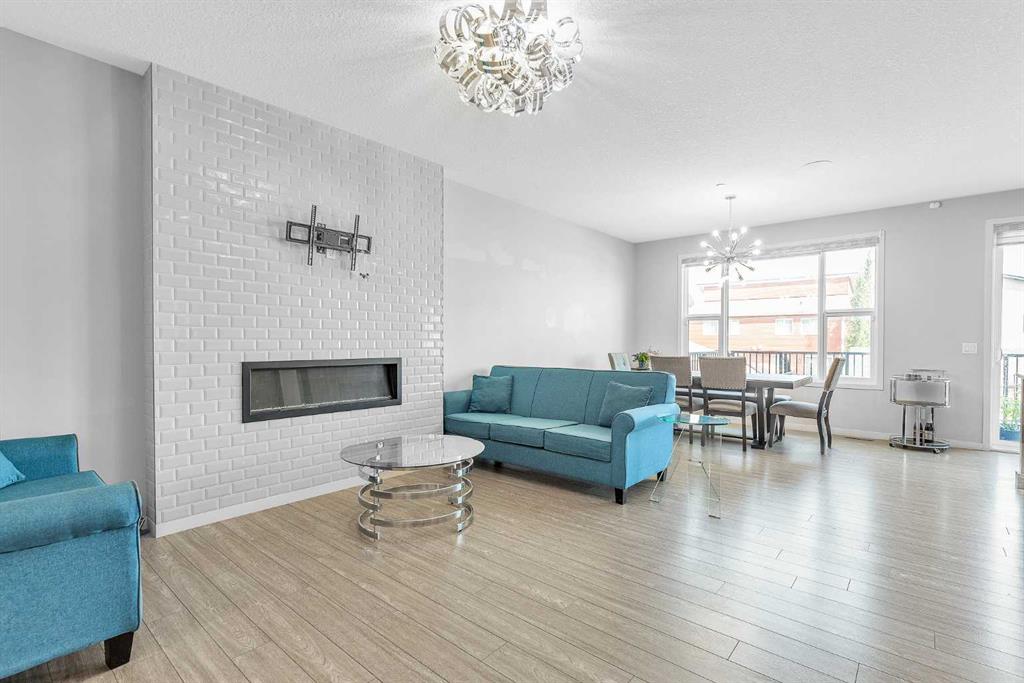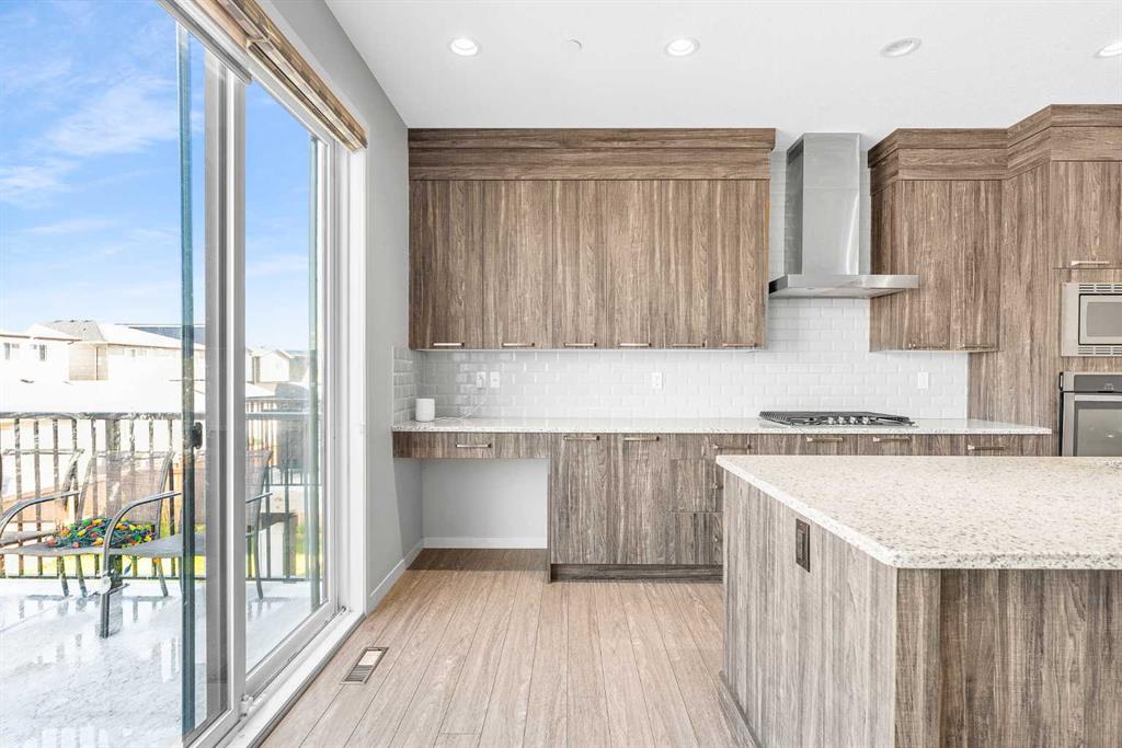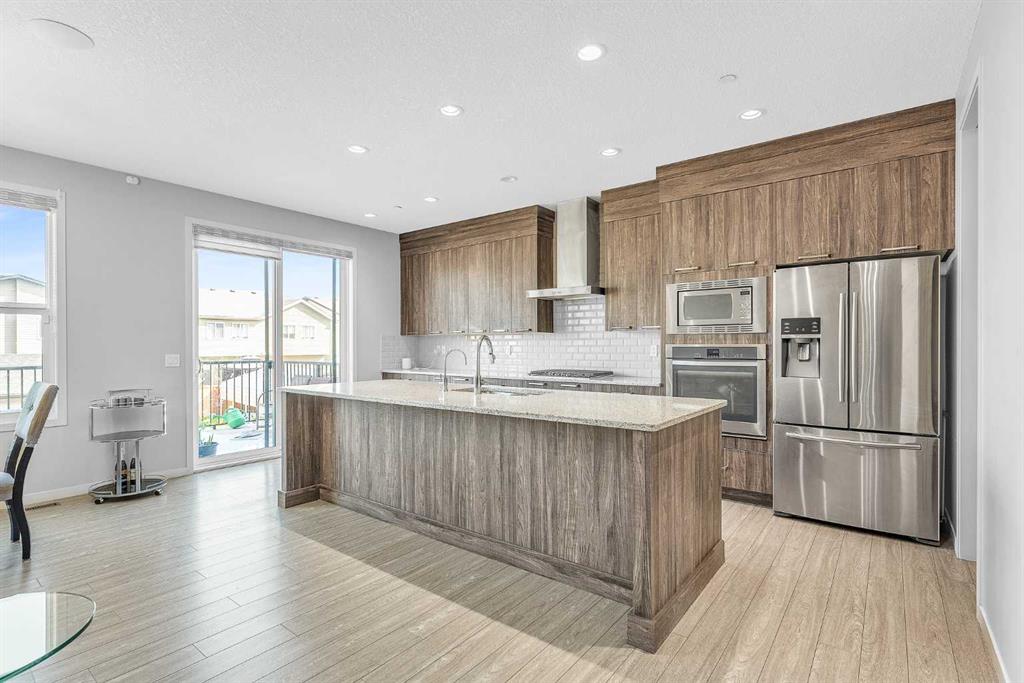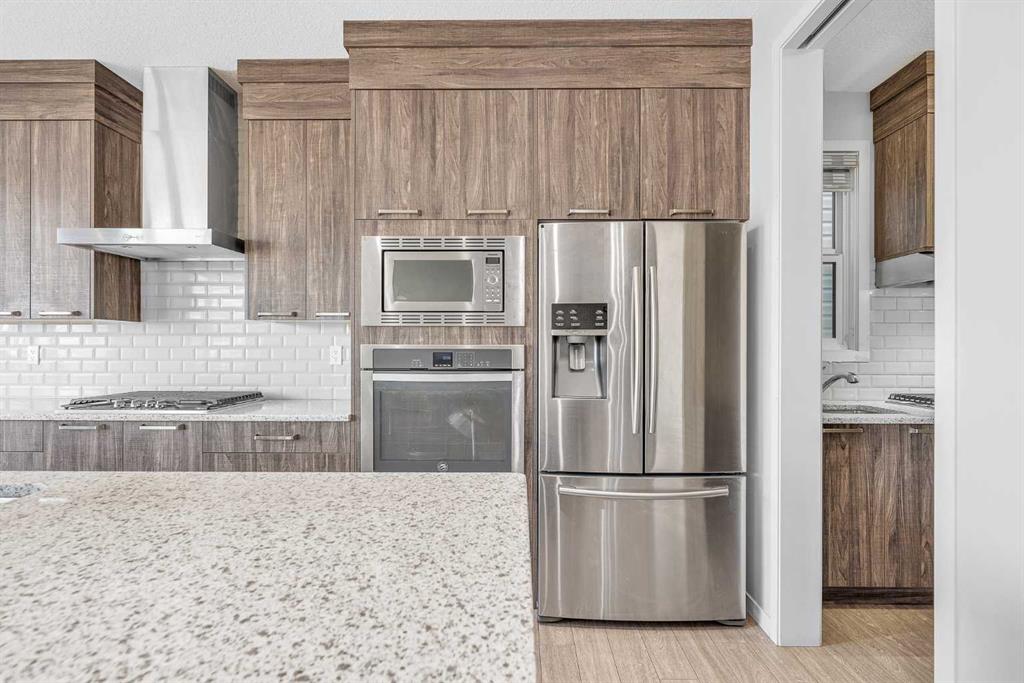 Stunning Upgraded Home with Walkout Basement in Livingston! Welcome to this beautifully upgraded home located in the sought-after community of Livingston, featuring a fully finished walkout basement and thoughtfully designed living spaces throughout. As you step inside, you're greeted by a bright, open-concept layout filled with natural light. The main floor showcases 9-foot ceilings, luxury vinyl plank flooring, 8-foot doors, and oversized windows, offering both elegance and functionality. At the heart of the home is the gourmet kitchen, equipped with granite countertops, stainless steel appliances, a large island, full-height cabinetry, a built-in microwave, built-in oven, and a gas cooktop. The added spice kitchen with Gas Cooktop makes meal prep a breeze for any culinary enthusiast. The living and dining areas are anchored by a stylish electric fireplace, adding warmth and charm to the space. From here, step out onto the upper deck—perfect for enjoying your morning coffee or evening drink. Upstairs features three spacious bedrooms and a large bonus room with expansive windows that flood the space with natural sunlight. The primary suite is a true retreat, complete with a 5-piece ensuite including a double vanity, glass-enclosed shower, soaker tub, and a generous walk-in closet. This level is completed by a second full bathroom, a convenient laundry room, and maintains the upscale finish with 9-foot ceilings and 8-foot doors throughout. The fully finished walkout basement is ideal for extended family or guests, offering a fourth bedroom, full bathroom, and a spacious family room with direct access to the backyard. Additional features include Water Purifier, Water Softener, Hot Tub. Close to Livingston Community Centre, shopping, playgrounds, and with easy access to Stoney Trail. This home offers the perfect blend of luxury, comfort, and location—a must-see for any serious buyer!