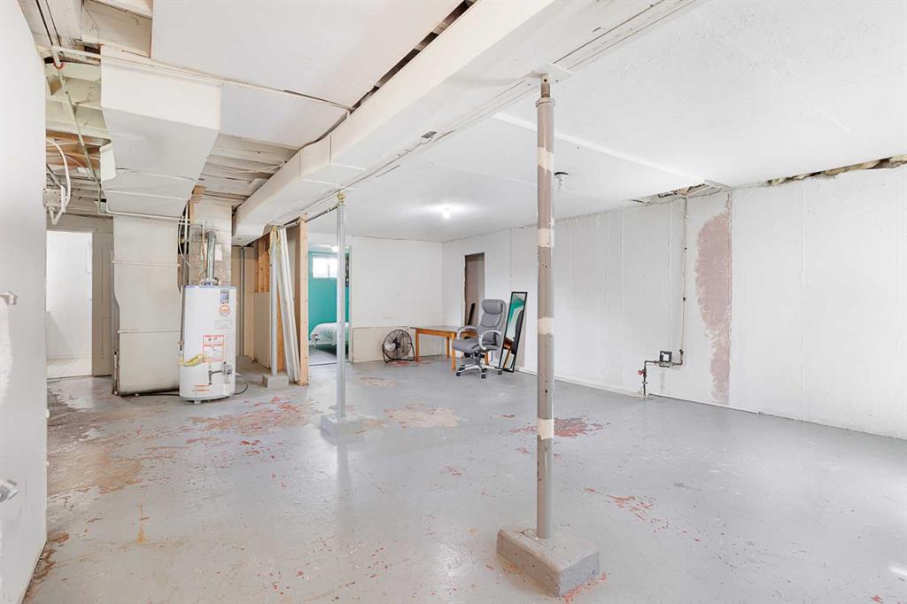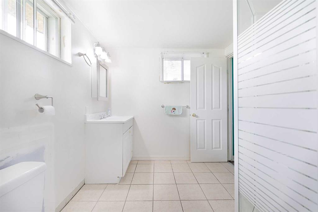 This 1,000 sq ft bungalow has three bedrooms and one bathroom on the main floor. The basement is mostly a blank canvas, partially finished with an existing bathroom, and bedroom.