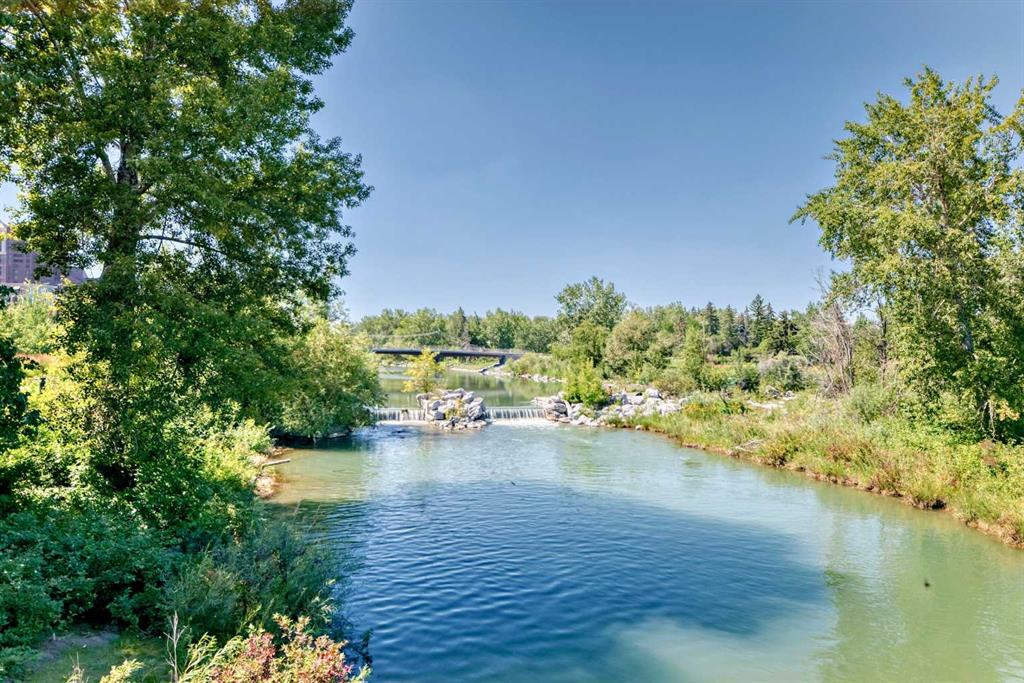 Modern One bedroom with Den/2bath condo unit on the "Flats Tower" of The Prestigious Waterfront Condo, Calgary's upscale Downtown neighborhood. Open concept floor plan, 9' ceilings, floor to ceiling windows. Kitchen is fully equipped with high-end stainless steel appliances. Quartz central island & countertop. Full heights cabinetry. In-suite laundry & air conditioned. Unit includes an assigned parking stall & a storage locker. Enjoy living in a resort style building with superior amenities : concierge service, fitness facilities, hot tub, sauna, movie theatre, social lounge, outdoor garden patio, visitor parking & car wash. Move in & enjoy the lifestyle of a waterfront community along the Bow River & Princess Island Park. Walking distance to Downtown, Chinatown, East Village & Eau Claire Market, shops & restaurants. Bike or walk along the water path. Perfect for first time buyers or as an investment property.