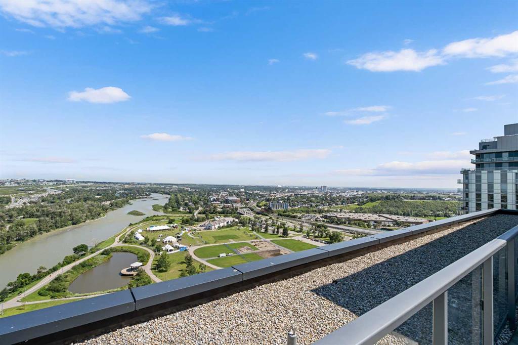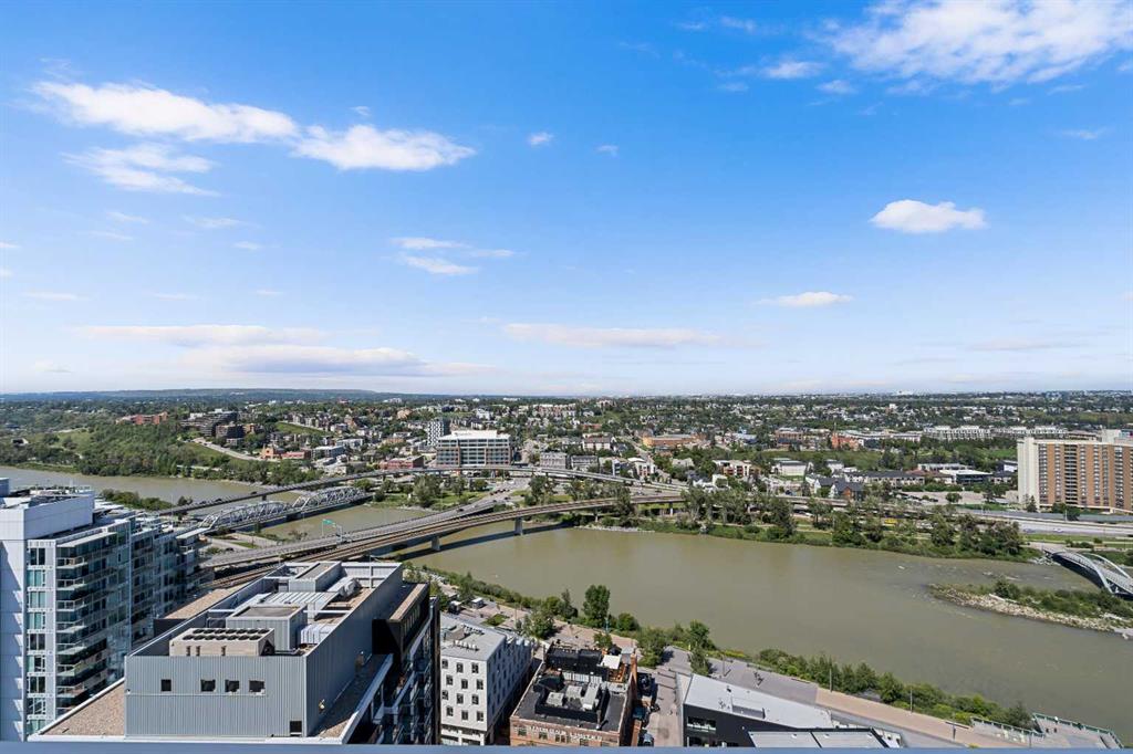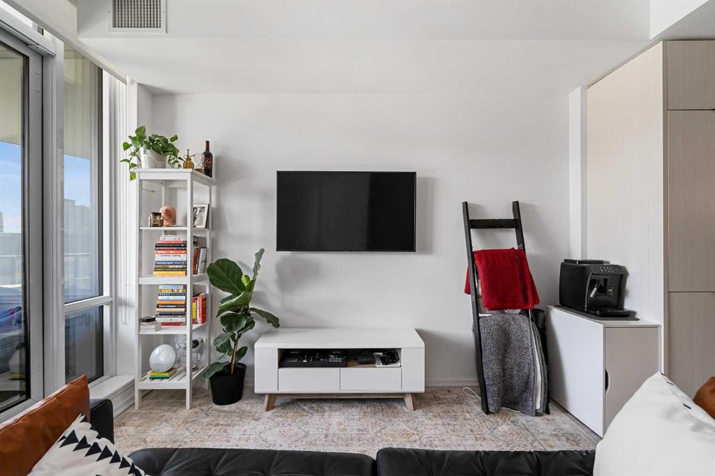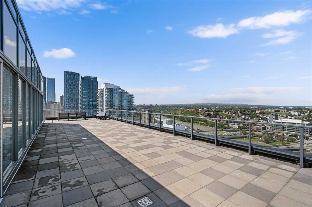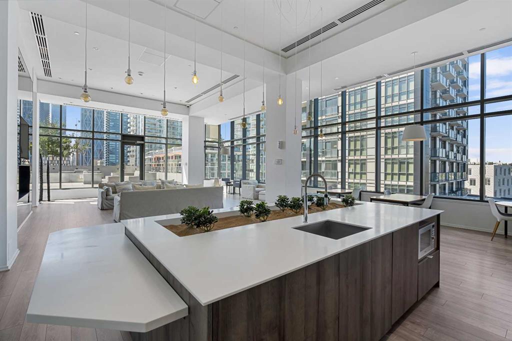 Attention Savvy Investors and Professionals! Look no further! Experience the Most Affordable LUXURY living condo in vibrant Downtown Calgary. Sunny WEST Facing unit with big balcony and fantastic VIEW! Modern kitchen with beautiful quartz countertops, built-in high-end appliances, and a big island. , Stylish tile backsplash, and ample cabinetry. In-suite laundry. Titled underground secured parking and a large storage locker on P2 level are included. The renowned sought-after building Verve features: Convenient full concierge service. Ample visitor parking and bike storage. Convenient Guest Suites provide accommodations for your visitors. Rooftop 25th floor observation/viewing deck and indoor gathering/meeting spaces. Sixth floor Spacious and luxury lounge/party room and outdoor hot tub, BBQ, gas fire pit, table tennis tables and outdoor furniture. Fitness Center is also on this floor. 24-Hour security. Pet-Friendly with board approval. WALKING distance to Bow River pathway, parks, island, LRT station, superstore, city hall, central library, community garden, restaurants, national music center, stampede park, casino, Chinatown and downtown core office buildings. One of the Best school systems includes Western Canada High School etc. ACT NOW before it’s gone again!