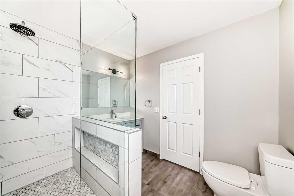 Upstairs, you’ll find two large kids’ rooms, a master suite, and an updated 4-piece bathroom . The primary suite is a true retreat, featuring a generous walk-in closet and a fully renovated ensuite with a sleek 10mm glass shower and rainfall shower head.