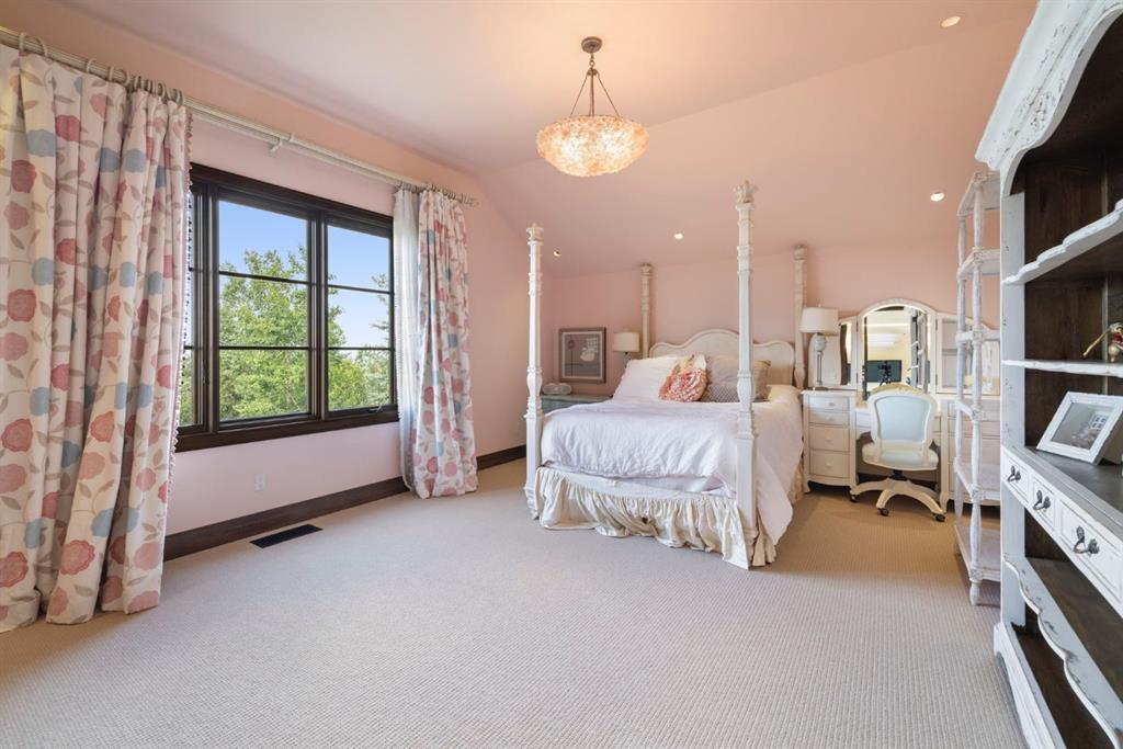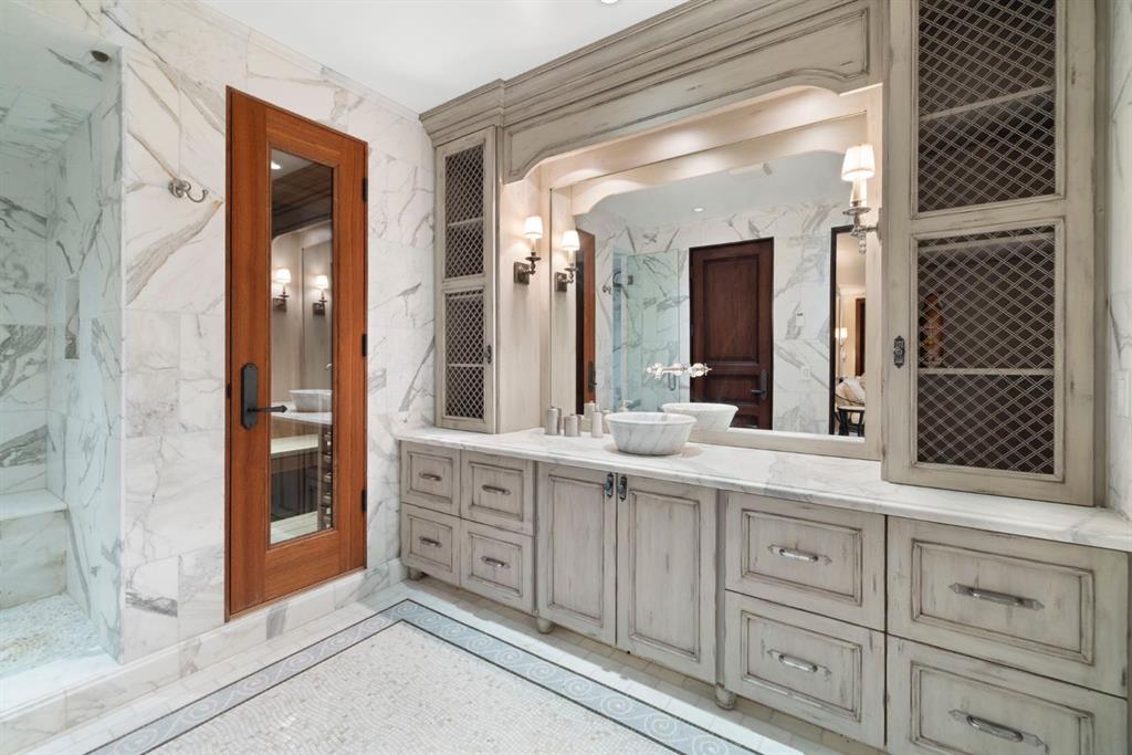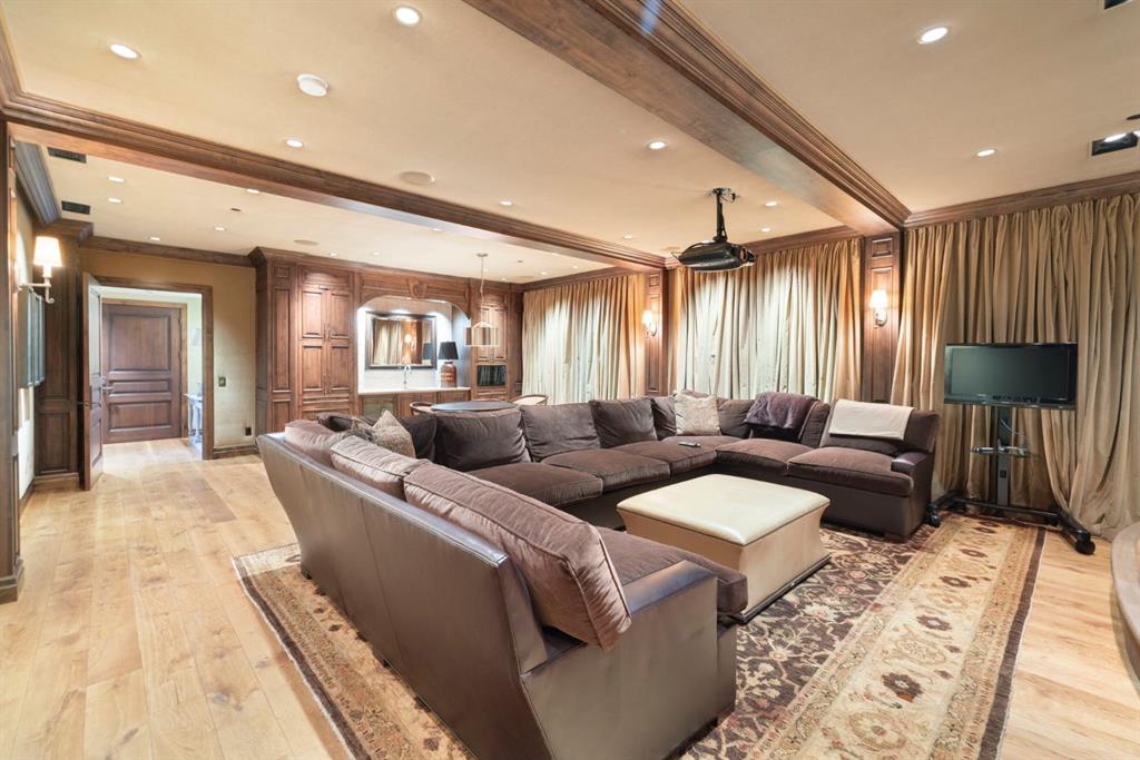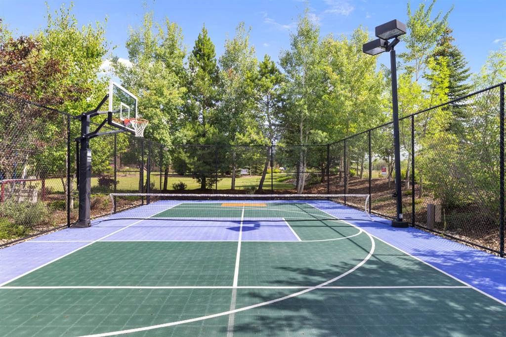 The private primary wing showcases sweeping 180 degree mountain views and a luxurious ensuite. The upper level, accessed by dual staircases or elevator, offers five children’s bedrooms, a gym, and recreation spaces. Completing the home is a six car garage, extensive storage, a sport court, and professionally landscaped grounds.