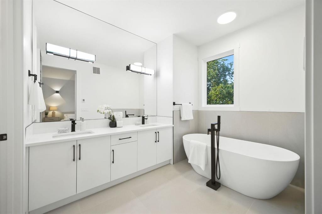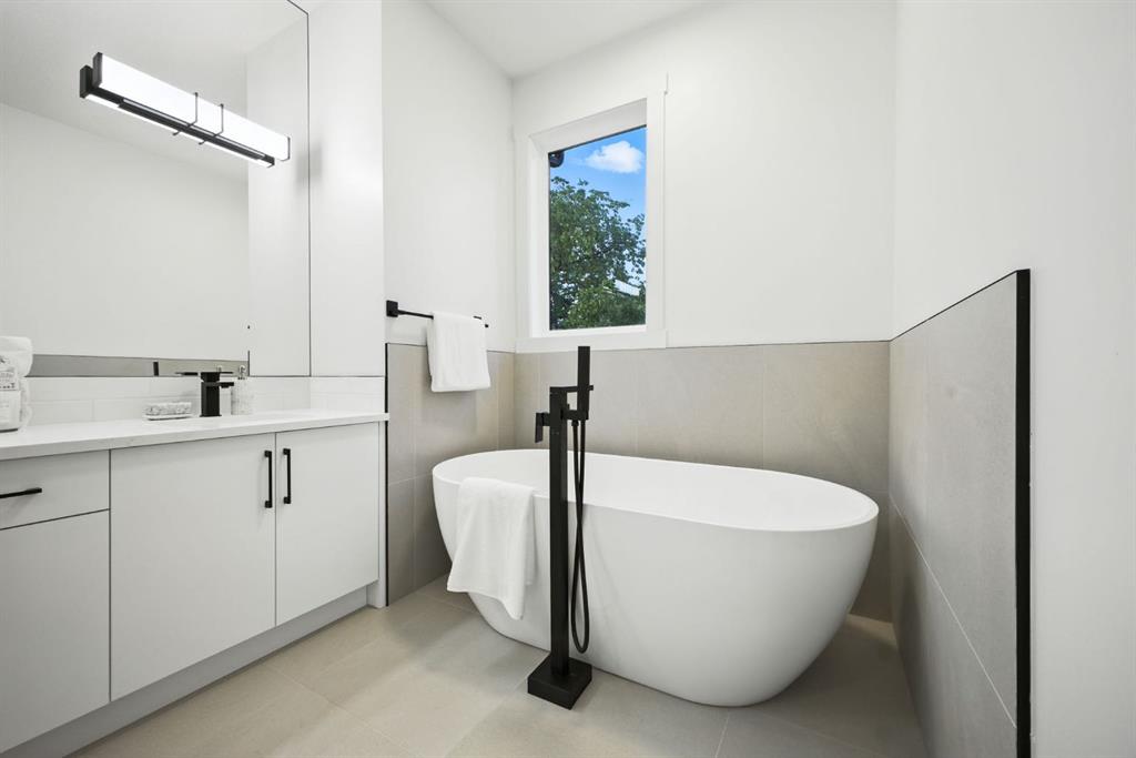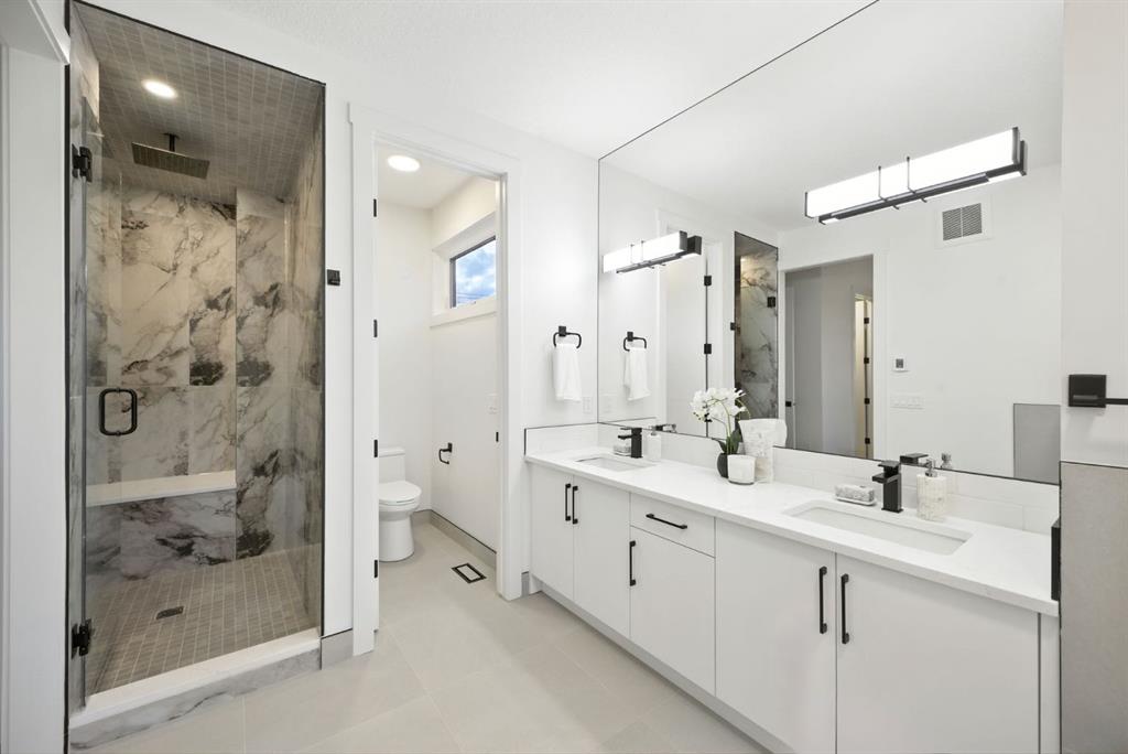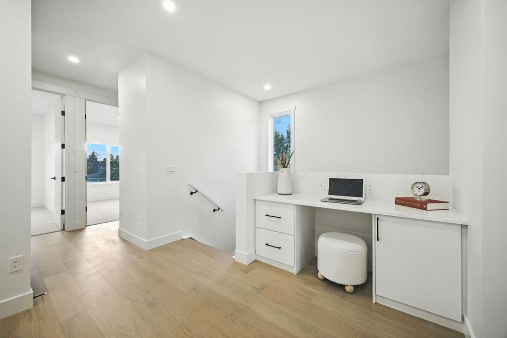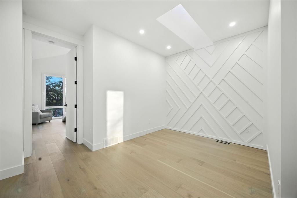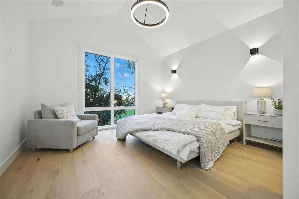 Upstairs, a bonus lounge area awaits – use this space as a kids zone, a yoga retreat under skylight, a office, or whatever works for you . The master bedroom is a sanctuary with vaulted ceilings, park views, and a spa-like ensuite featuring a luxurious soaker tub and steam shower. Two additional bedrooms provide comfortable havens for children or guests, while a well-appointed laundry room makes household chores a breeze.