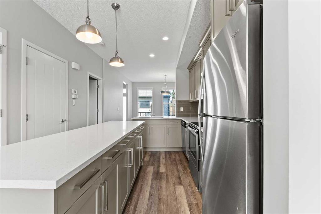 Welcome to this beautifully maintained half-duplex with a legal secondary suite, located in the vibrant community of Cornerstone. Thoughtfully designed for both comfort and functionality, the home offers a bright, open main floor with a spacious living area, dining space, and a large kitchen complete with a central island, quartz countertops, and stainless steel appliances—perfect for both entertaining and everyday living. A convenient main floor laundry area adds to the practicality of the layout, while access from the dining area leads to a back deck and private yard, creating a seamless indoor-outdoor flow. Upstairs, you’ll find three generously sized bedrooms, including a primary retreat with a walk-in closet and 4-piece ensuite, as well as a second 4-piece bathroom for the family. The legal basement suite is equally impressive, featuring a modern U-shaped kitchen, a comfortable living room, large bedroom, full bathroom, and separate laundry—making it a fantastic option for rental income or extended family living. A double detached garage provides ample parking and storage, while recent updates including new siding, eavestroughs, and a brand-new roof (all completed earlier this year) ensure peace of mind for the next owners. Situated in Cornerstone, you’ll enjoy quick and easy access to Stoney, Metis Trail and Deerfoot Trail, plus nearby schools, playgrounds, shopping, and a full range of amenities. This clean and move-in ready property is an excellent opportunity for homeowners and investors alike.