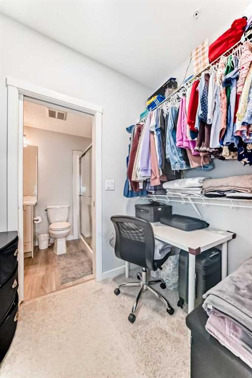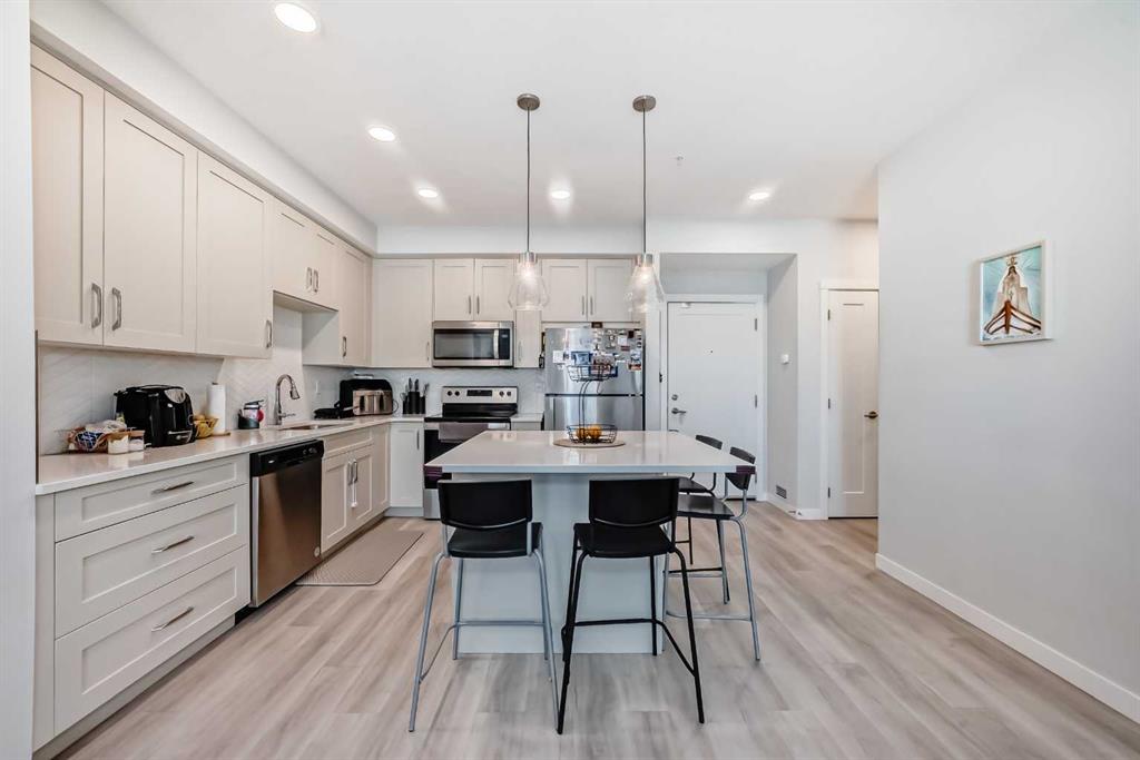 Sought after Shawnee Slopes has a listing just for you! This gorgeous 3rd floor, 2 beds, 2 bath 788 sq. ft. home, features 9' high ceilings and an open floor plan that encompasses the living room and gourmet kitchen. Here you will find a center island with storage, stainless steel appliances, granite countertops and chevron tiled backsplash. This 3rd floor unit has a light-coloured palette, luxury vinyl plank flooring throughout. The balcony has a gas hookup for your BBQing convenience. The primary bedroom offers a large walk-through closet and the second bedroom has a good-sized closet as well. The main bath boasts of a deep tub and tall counter and the laundry machines are full-sized. You'll have access to a titled underground parking stall and storage unit. The condo is close to Fish Creek Provincial Park, C-train station, playgrounds, St. Mary's University, and Shawnessy Shopping Centre. Macleod Trail is easily accessible. It's the perfect place to call home! This is a great first home purchase or a reliable investment property. Currently tenanted until March/26 but this is negotiable. Tenant rights apply.