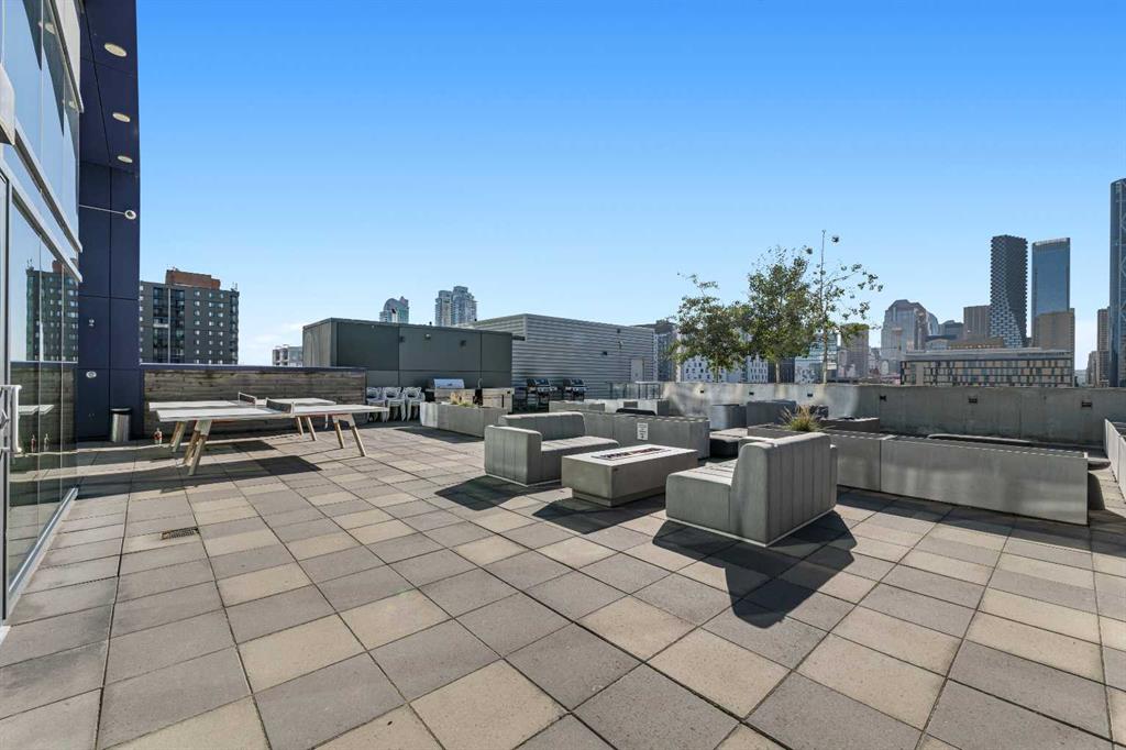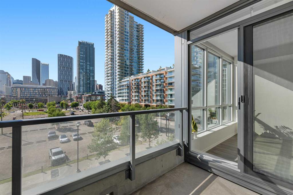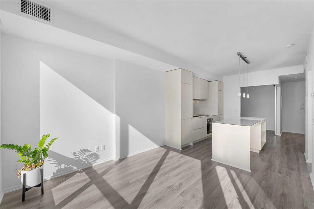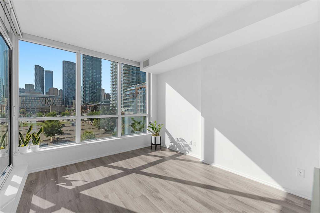 Experience urban living at its finest in the prestigious Verve building, nestled in Calgary’s vibrant East Village. This stunning 578 sq ft apartment offers one bedroom plus a versatile den, perfect for a home office or guest space (builder floor plan 620 sq ft). Fantastic CITY VIEWS from both the living room and master bedroom. The contemporary design is highlighted by sleek quartz countertops, European-style cabinets, and high-end finishes throughout. The open-concept living area is bathed in natural light, with floor-to-ceiling windows. Step out onto your private balcony to enjoy unobstructed west-facing views of the city skyline. The spacious 4-piece bathroom exudes luxury with modern fixtures and ample storage. Residents of the Verve enjoy access to top-notch amenities, including a state-of-the-art fitness center, two beautifully landscaped terraces with outdoor grills, and guest suites for visitors. The titled underground heated parking stall and storage locker add convenience and peace of mind. Located in the heart of East Village, you’ll be steps away from the Bow River pathways, eclectic shops, trendy cafes, and lush parks. Whether you’re exploring the city or enjoying a quiet evening at home, this property offers the perfect blend of comfort and lifestyle. Book private viewings today!