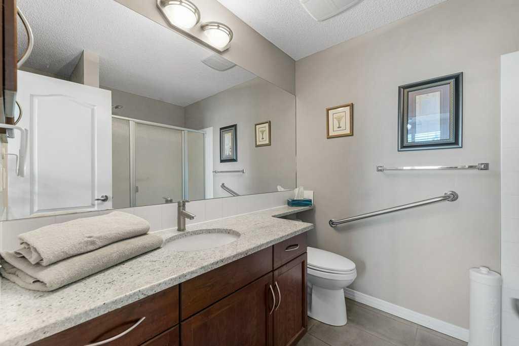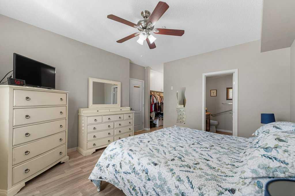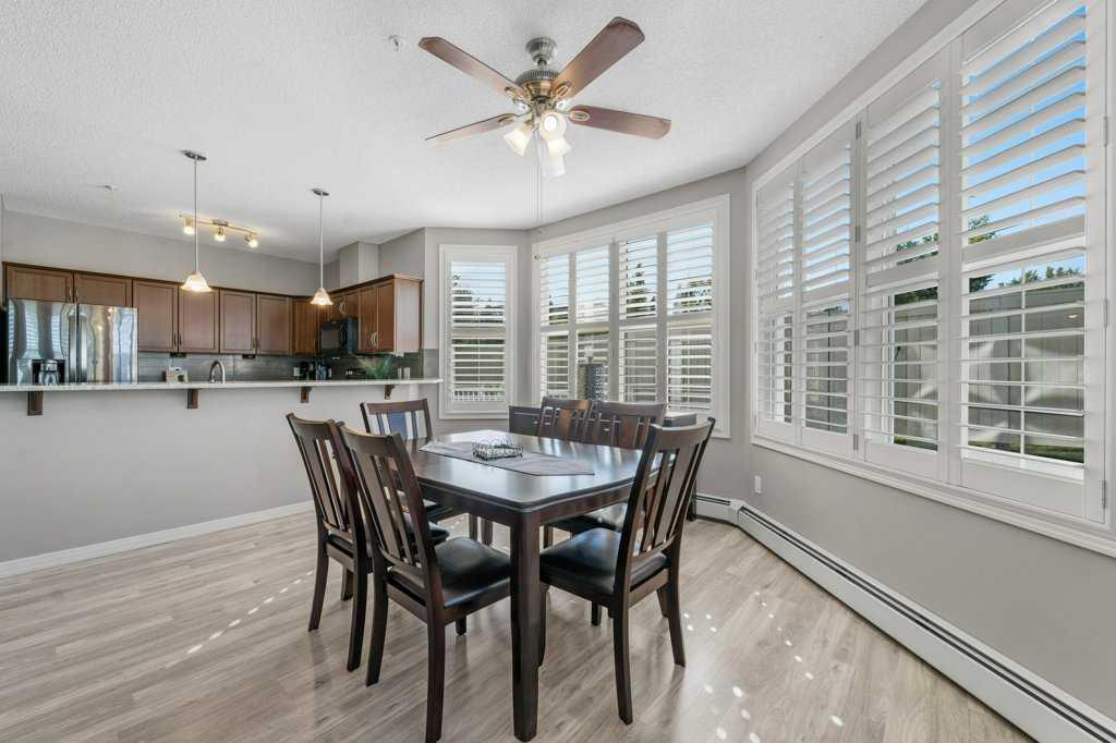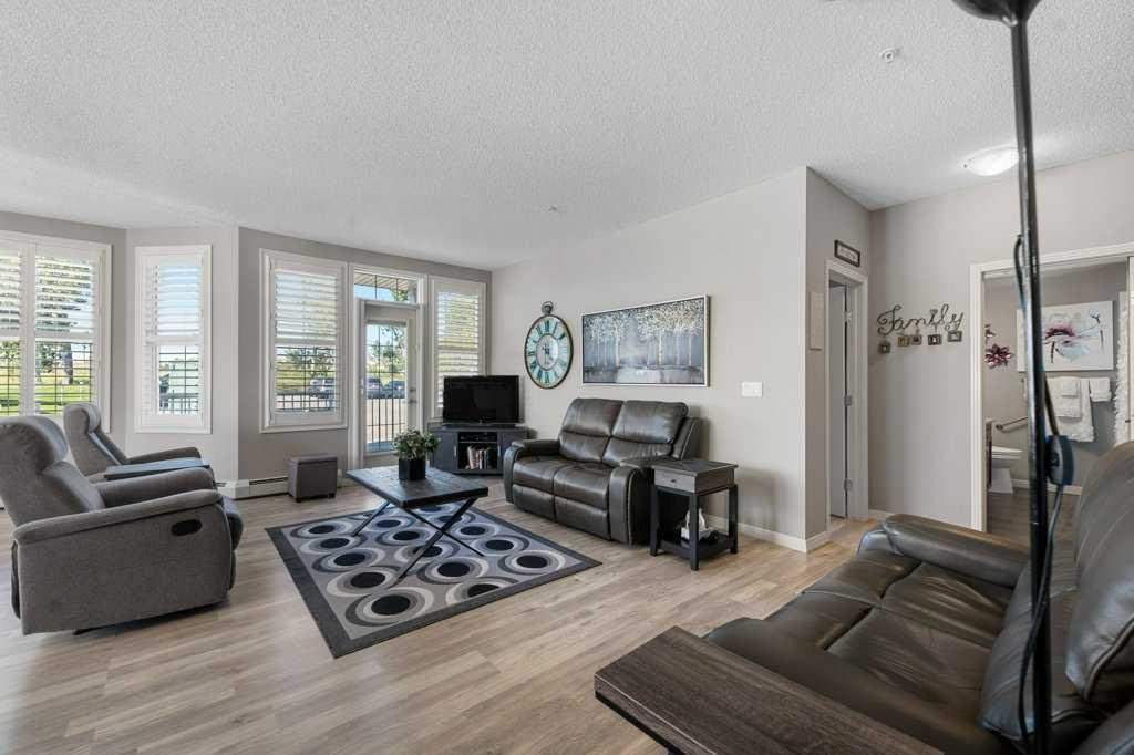Welcome to this beautiful large corner "former show suite" - located on the main floor of the desirable Penncross complex. So much natural light from large windows throughout the living room and both bedrooms, this home offers a bright and open executive space. Thoughtful upgrades are found throughout, including high-end shutters on all windows, a corner built-in cabinet near the entry, a built-in "Murphy Bed" in the guest room, plus a full sized washer and dryer. The gourmet kitchen is large, with an abundance of cabinetry, plus granite counters, complimented by stainless steel appliances. The living room is spacious, allowing room for entertaining. The primary bedroom features a walk-in closet and a private updated 3-piece ensuite, while the second bedroom is generous in size and conveniently located next to a 4-piece main bathroom. Penncross offers outstanding amenities including a fitness centre, games room, library with fireplace, and indoor/outdoor putting greens—perfect for relaxing or entertaining. Just steps away is Crystal Ridge Golf Course, and your condo fees include year-round lake access to Crystal Shores. To top it all off, this unit comes with two titled underground parking stalls—a rare and valuable bonus. Enjoy executive-style living at an incredible value in one of Okotoks' most desirable communities!