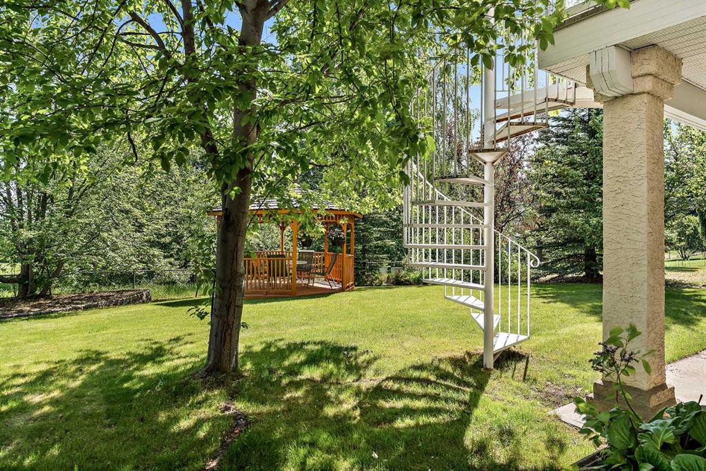 Backyard highlights: Expansive green space for family fun like living in forest; Mature apple tree with good production every year; Wooden Canopy surrounded by lush greenery that creates a peaceful, natural retreat; Covered patio.