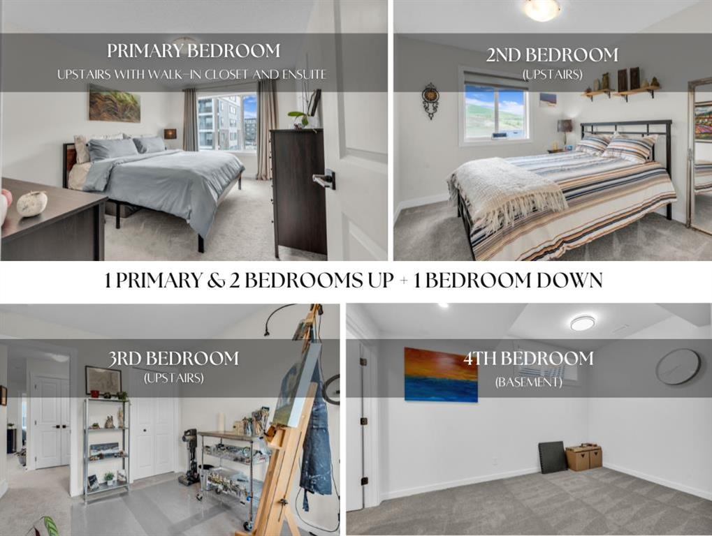 Step into an airy main floor with 9’ ceilings, upgraded black hardware, and a stunning kitchen complete with premium appliances and sleek finishes—ideal for everyday living and entertaining alike. The second level features three spacious bedrooms, a versatile bonus room, including a primary suite with a walk-in closet and 3-piece ensuite, along with a conveniently located stacked washer/dryer and a full 4-piece bath.