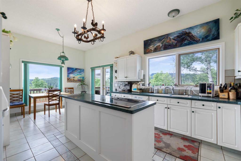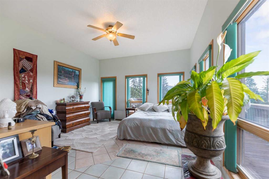 Stunning Foothills Retreat in Square Butte Ranch. Nestled in the rolling hills of Foothills County, just north of Millarville, this exceptional 1.8-acre property sits proudly atop Black Bear Lane in the highly sought-after Square Butte Ranch community. This private, gated, bare-land condominium offers a rare blend of country living with the conveniences of shared water access and community standards that preserve the beauty and quality of the area. Perched on the crest of the hill, the home is designed to take full advantage of its setting. From the expansive wrap-around deck, you can enjoy breathtaking panoramic views of the valley and surrounding foothills, making for peaceful mornings and unforgettable sunsets. Inside, this inviting split-level home offers over 2,100 square feet of living space plus a fully developed walkout basement. The heart of the home is the open-concept living room, anchored by a striking floor-to-ceiling stone wood-burning fireplace with a decorative oversized mantle. Natural light fills the space, enhancing the warmth and charm of this country retreat. The spacious primary suite is conveniently located on the main level, featuring a five-piece ensuite and serene views. The kitchen offers a functional layout with a central island and abundant windows framing the stunning landscape. A private den on this level provides an ideal work-from-home or reading space. The walkout basement, recently renovated, offers even more living space with a second fireplace (gas), a large recreation room, an additional den, cold room, bonus room, and generous storage areas, including dual utility rooms supporting the home’s water and heating systems. Whether you are raising a family or seeking a tranquil country lifestyle, this home delivers comfort, functionality, and beauty in equal measure. Square Butte Ranch is more than a community—it is a lifestyle, offering residents the serenity of country living with the confidence of shared amenities and well-maintained standards.