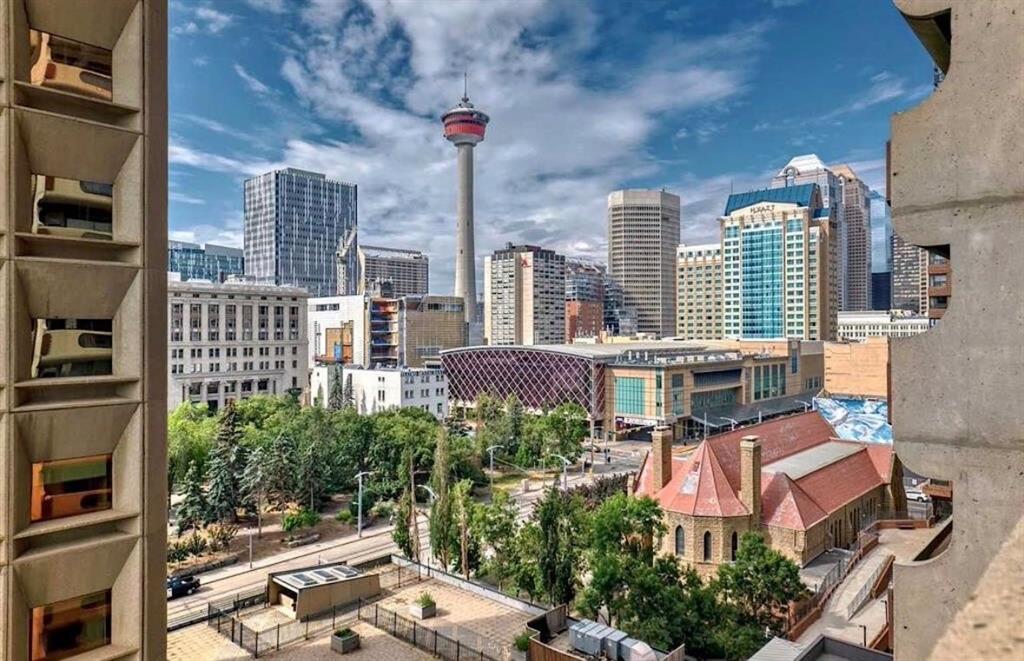 Rare South-Facing Corner Unit with Iconic Views + Indoor Parking! This is downtown living done right. A bright, sun-filled 1 bedroom + den corner unit offering south-facing views of Olympic Plaza, the Calgary Tower, and the city skyline—all without the summer heat thanks to the smart positioning behind Rocky Mountain Plaza. Inside, you’ll love the open-concept layout, new laminate flooring, fresh modern paint, and a tastefully updated kitchen and bathroom completely move-in ready. The generous bedroom is paired with a flexible space ideal for a home office or extra storage. Enjoy resort-style amenities including a fitness centre, racquetball court, sauna, and rooftop patios. Located in the C-Train free fare zone, you’re steps from shopping, top restaurants, Chinatown, Bow Valley College, Central Library, Glenbow Museum, theatres, and the Bow River pathway system. Covered indoor parking included a rare and highly sought-after feature in the downtown core.