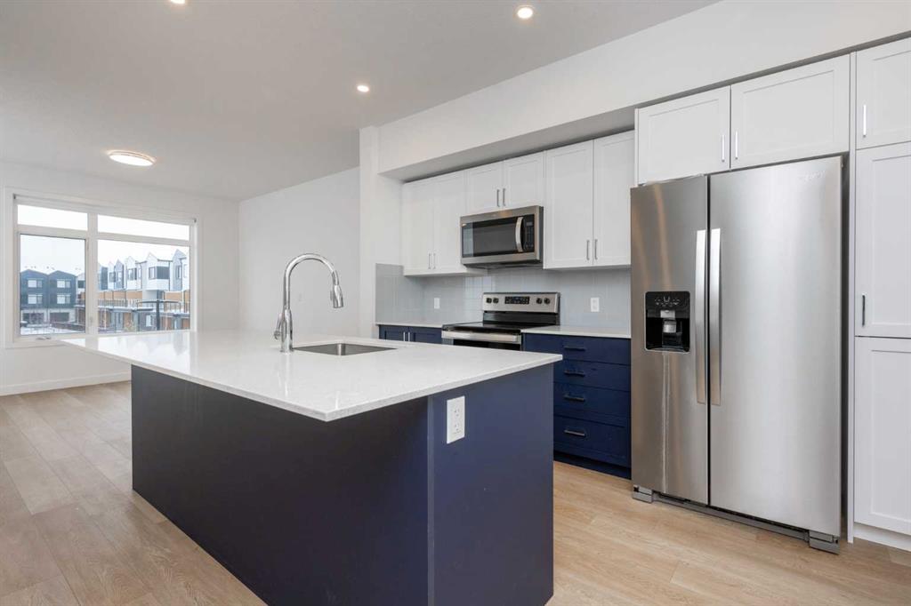 This beautifully designed corner-unit townhouse with 3 bedrooms, 2.5 bathrooms, and a main floor den offers a perfect blend of style and functionality. Featuring thoughtful upgrades throughout, the kitchen is the heart of the home with its expansive quartz island and stainless-steel appliances, opening seamlessly into the bright and airy living and dining areas.