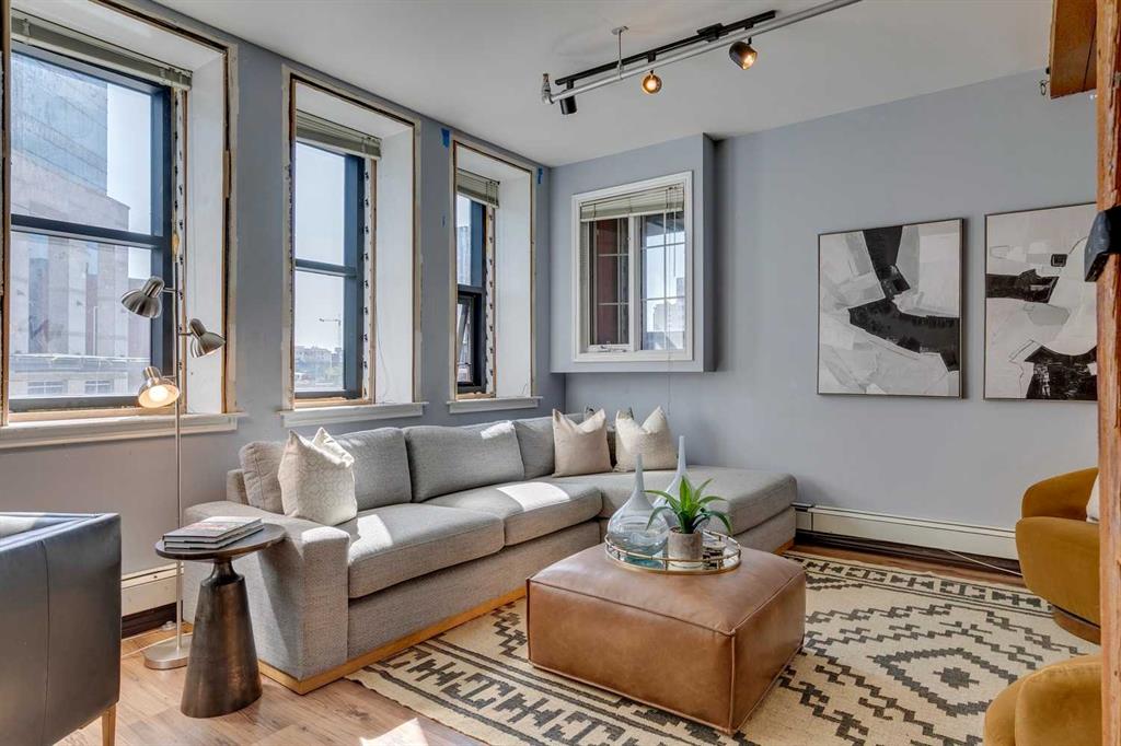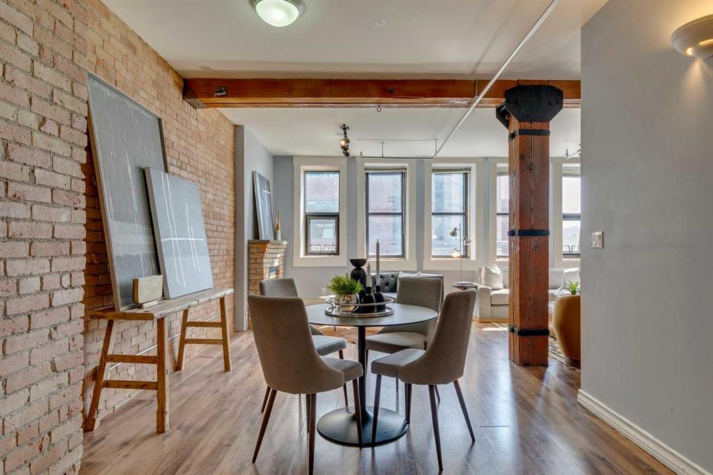 Nestled in the heart of Calgary's Beltline, this extraordinary red brick loft offers a rare opportunity to own a piece of the city’s rich history. Constructed in 1912 for the Imperial Tobacco Company by the renowned A. Dale and Associates, the architectural firm behind the iconic Calgary Tower, this building underwent a stunning conversion to lofts in 1995. For the first time ever, these timeless residences are available for sale, blending historical charm with modern sophistication. Offering over 1,100 SqFt, this expansive loft exudes character with its original brick walls, exposed wood beams, and soaring ceilings. A wall of windows floods the space with natural light, creating a warm and inviting ambiance reminiscent of a classic New York City loft. The open-concept layout is thoughtfully designed, offering endless possibilities for both living and working. A private den provides the perfect space for a home or business office, while two generously sized bedrooms are complemented by a five-piece Jack and Jill bathroom plus there is an additional three-piece bathroom. The galley-style kitchen features maple cabinetry with under mount lighting, stainless steel appliances, and a seamless flow into the dining and living areas. Whether you envision this space as your personal sanctuary or a dynamic live/work environment, the possibilities are as limitless as your imagination. Beyond the loft itself, the building offers an array of amenities, including a gym, a games room, and a rooftop patio with breathtaking views of the Downtown Skyline. An above-ground parking spot is also included, ensuring convenience in this vibrant urban setting. This is more than a home; it’s a lifestyle. A rare blend of history, elegance, and modernity, this loft is a once-in-a-lifetime opportunity to own a truly unique piece of Calgary’s architectural heritage.