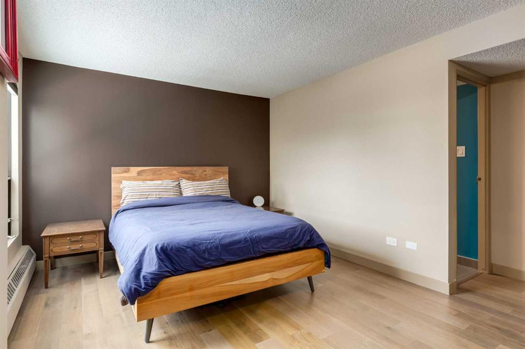 Priced to sell! Explore this beautifully updated condo featuring over 1,000 sq ft of stylish living space with laminate plank hardwood flooring throughout. At the heart of the great room is the kitchen with a spacious island, plentiful storage, and a convenient walk-in pantry. Sunlit west-facing windows brighten the dining area, and the family room flows to a sheltered balcony with fresh air and city views. The large primary bedroom includes dual closets and a sleek 3-piece ensuite. A versatile den or second bedroom, an additional full bathroom, and in-suite laundry add convenience to the layout. With a covered, gated parking stall for peace of mind, this condo is ideally located just steps from the lively shops and restaurants of 17th Avenue and offers easy access to schools, shopping, the Bow River pathway, public transit, and downtown. Experience the perfect blend of urban lifestyle and everyday comfort. Move-in ready and incredible value at this price point.