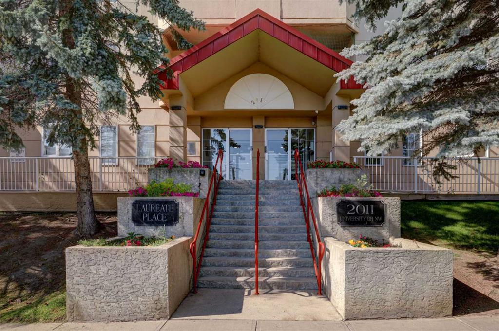 Prime location! 5 minutes walk to University of Calgary. Close to the C-Train station, Foothills Hospital, Children hospital, Sait, Market Mall, Landmark Cinemas, McMahon Stadium and is 10 minutes drive to downtown. Public transportation is at the front of the building. This unit is located on the 4th floor of the concrete building. Over 900 sq. ft. this nome offers a large living room with patio door leading to a private balcony with views of McMahon Stadium, Foothills athletic park & downtown skyline view. A galley kitchen with full package of appliances. Spacious 2 bedrooms with walk in closets. Master bedroom has a 4 pc ensuite. In suite laundry room with storage area. Heated underground parking stall (30). $0.84/ sq ft of condo fee includes sewer, water, heat, trash, professional management, insurance, underground parking, exterior maintenance and reserve fund contribution. Vacant for quick possession.