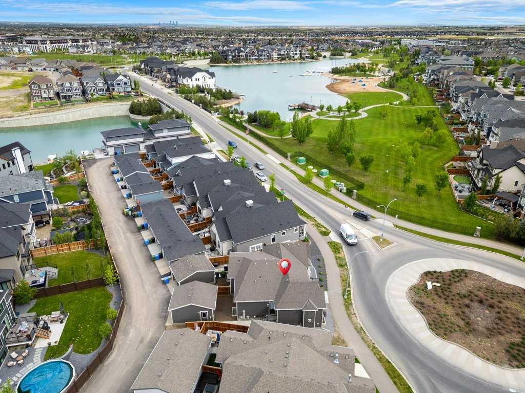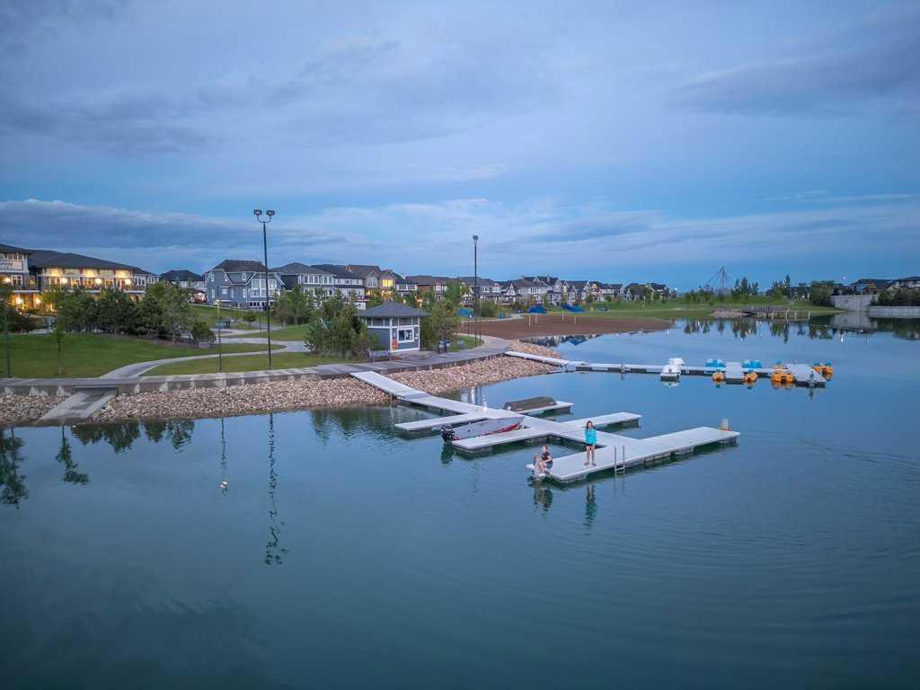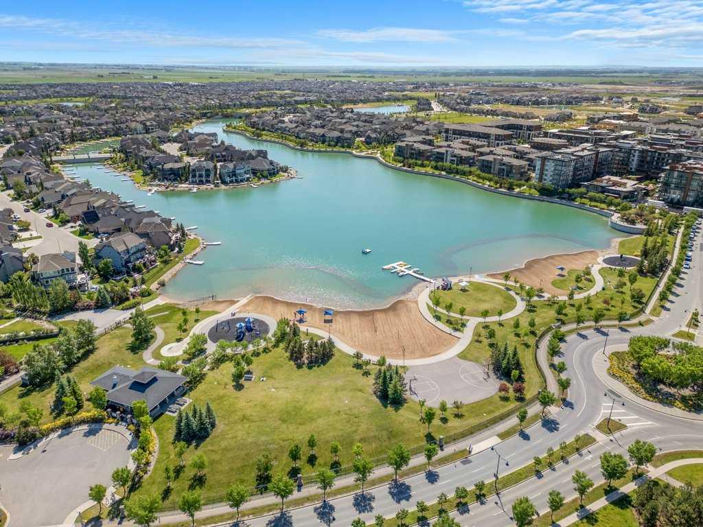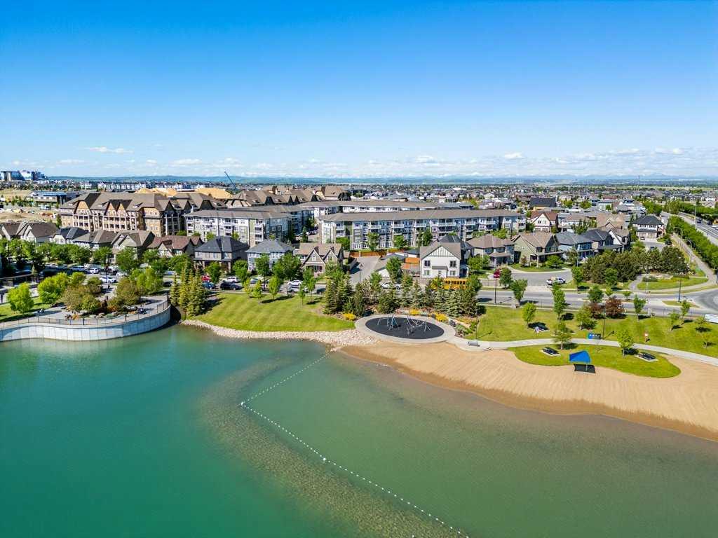 Lakeside living at its finest! Presenting a fully developed bungalow villa with over 1750 square feet of developed space, Gemstone lighting, NO CONDO FEES, located steps to Mahogany's main beach, central park and across from the future historic Ollerenshaw farm. Enter into 10' knock down ceilings, a front lifestyle room with focal gas fireplace, luxury vinyl plank and connects seamlessly to the entertainment size kitchen boasting a plethora of stacked classic white cabinets, quartz counters, built in microwave and soft close mechanics and full stainless steel appliance package Off the kitchen is the family size dining area and access to the fully developed lower level. Convenient main floor laundry with access to the side entry to the private yard and double detached garage. The primary bedroom is set to the back of the plan, quiet and a generous size for all types of furniture placement with your tiled 3 piece en-suite bath designed with storage, quartz counters, and a full size shower. Open rail guides you to the lower level beginning with a media room, 2 added bedrooms a 4 piece tiled bath as well as plenty of storage wrapped in sunshine windows, 9' ceilings and rough in Central air. Experience this awarded winning 4 season community featuring 2 beaches, splash park, tennis, basketball and pickle ball courts, an urban village, parks, playgrounds, 74 acre wetlands, schools, transit, 22km of walking paths, 63 acre lake and year-round activities, both indoors and out.
