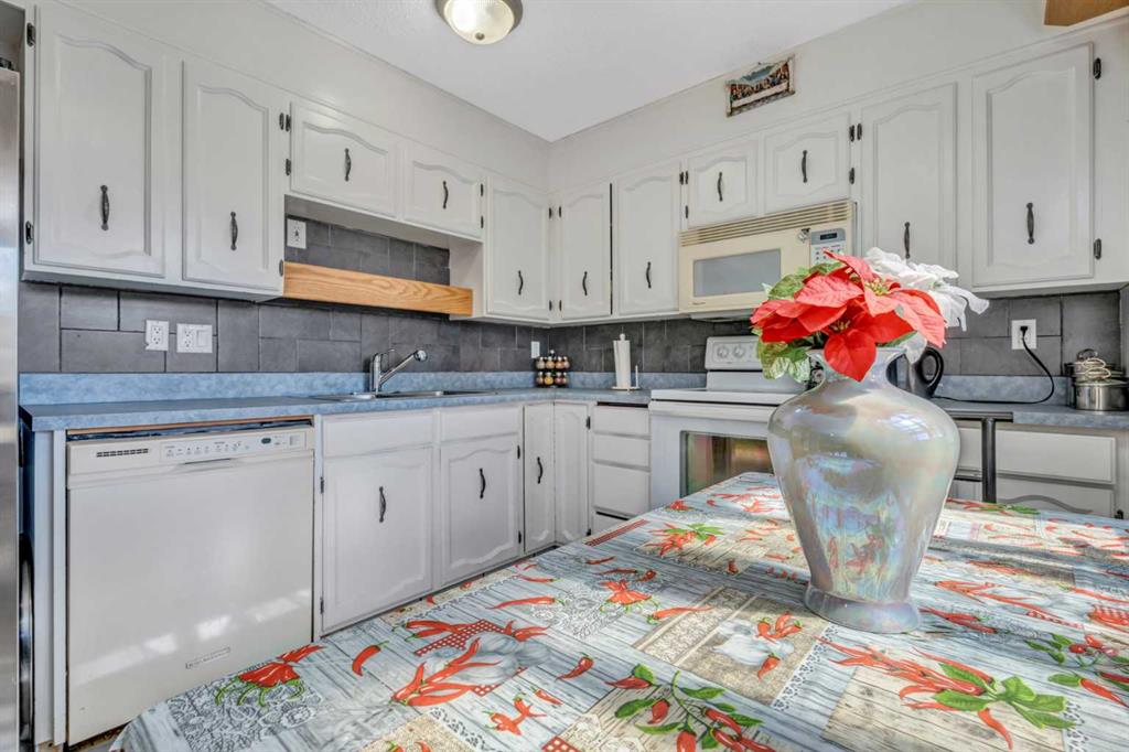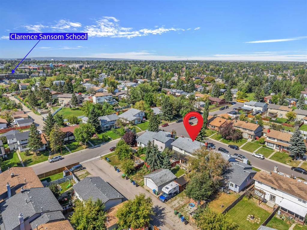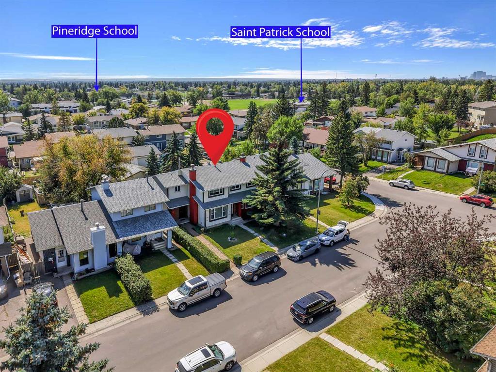 VERY WELL KEPT | QUIET CUL-DE-SAC | FULLY FINISHED | OVERSIZED LOT | OVERSIZED DOUBLE GARAGE WITH 10’ CEILINGS | PAVED BACK LANE | SOUTH BACKYARD Nestled on a quiet cul-de-sac in the heart of Pineridge, this semi-detached home combines thoughtful updates with family comfort and investor appeal. A welcoming front pathway leads inside to a spacious living room featuring an oversized window that fills the space with natural light and a cozy brick surround wood burning fireplace, perfect for gathering together on cool winter evenings. Updated flooring and a neutral colour palette create a move-in ready backdrop throughout the main level. The bright eat-in kitchen offers white cabinetry, a stainless steel fridge with water and ice dispenser and a large window overlooking the sunny backyard. An adjacent dining room sets the stage for family meals and entertaining with sliding patio doors extending the space onto an enclosed deck for barbeques and relaxed weekends. A tucked away powder room is conveniently located as you head downstairs. Upstairs, 3 spacious bedrooms provide restful retreats filled with natural light, complemented by a 4-piece bathroom. The fully finished basement expands your living space with a large rec room ideal for movies, game nights or a home gym, plus a built-in desk area for work, study or creative projects. Ample storage keeps everything organized. Outdoors, a south-facing backyard offers room to play, garden and gather around a firepit on summer nights. Garden beds and grassy space make it both functional and inviting for families. A pathway leads to the oversized detached garage with 10’ ceilings and access to the paved back lane. Location is unmatched with Pineridge School, Saint Patrick School and Clarence Sansom School all within walking distance, along with transit, Village Square Leisure Centre, shops, and restaurants. Sundridge Mall and the C-Train station are just a quick drive, ensuring excellent convenience and accessibility. This well-cared-for home is an outstanding opportunity for families seeking space and community or investors looking for a property with strong long-term appeal.