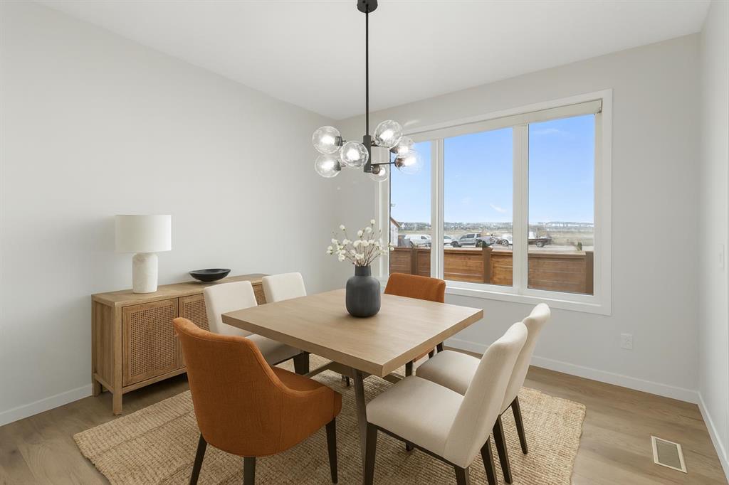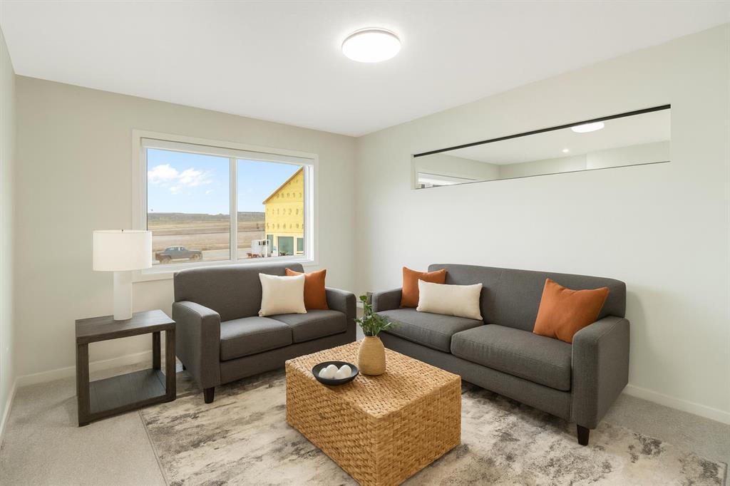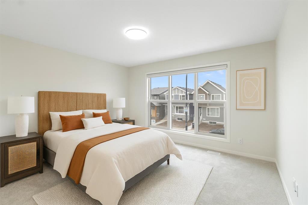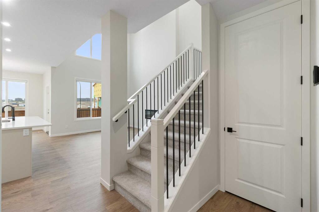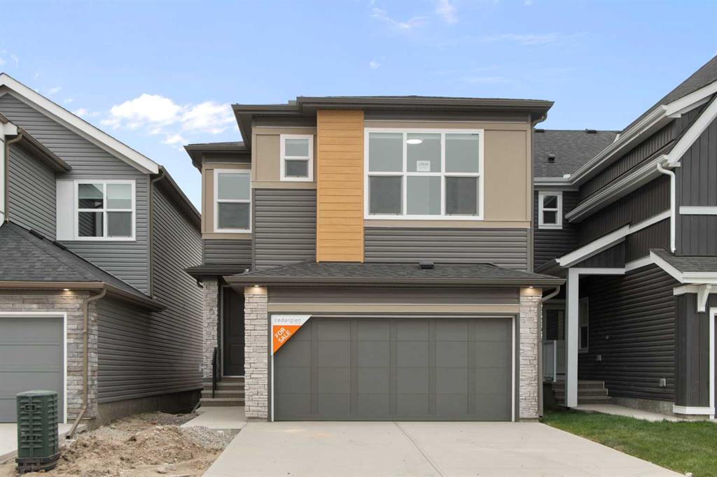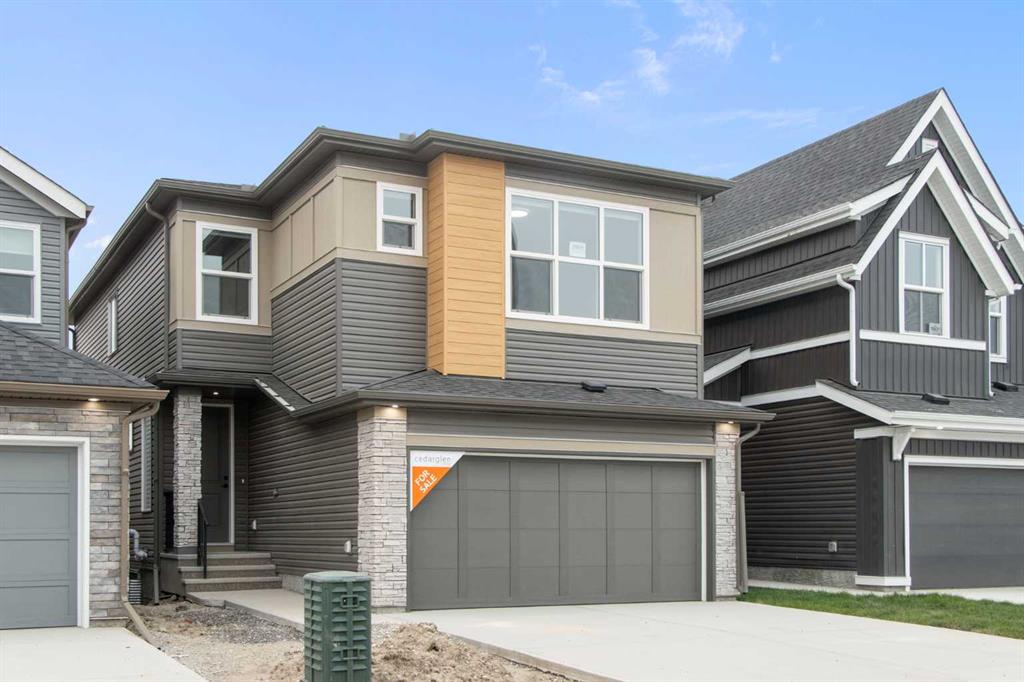 From the moment you step inside this brand-new Cedarglen Homes Nanton model in Seton, you’ll feel the rare blend of sophistication and comfort that makes a house instantly feel like home. Designed with modern families in mind, this two-storey residence combines architectural drama with functional spaces—perfect for both lively entertaining and quiet moments of retreat. The foyer opens into a flexible front room that adapts seamlessly to your lifestyle—an inspiring home office, kid’s play room, or a tucked-away reading nook. At the heart of the main floor, the kitchen commands attention with its soft greige cabinetry, quartz countertops with subtle marble veining, and a handcrafted-look backsplash that adds texture and charm. You’ll receive an allowance of $6,900 to select your desired appliances at the builder’s supplier. A large central island invites casual breakfasts, after-school homework sessions, or late-night conversations over your favourite beverage, while the adjoining nook flows effortlessly onto the deck for al fresco dining. Anchoring the main floor, the great room soars with an open-to-above ceiling and a full-height fireplace—a striking focal point that bathes the room in natural light and sets the stage for gatherings big and small. Thoughtful touches like a mudroom off the garage & a 2 pc powder room make daily living beautifully practical. Upstairs, the private primary suite becomes your sanctuary, complete with a spa-inspired ensuite featuring dual sinks, a walk-in shower, and a spacious walk-in closet. Two additional bedrooms and a sleek upper-floor laundry room simplify family routines, while the bonus room overlooking the great room provides a second living space for movie nights or playtime. The open-to-below design keeps the entire home feeling connected, airy, and architecturally refined. Every finish has been carefully curated: warm wood-toned luxury vinyl plank on the main floor, soft speckled carpet underfoot upstairs, creamy quartz and tile in the baths, and bold matte black fixtures throughout—a timeless palette that feels both modern and inviting. Beyond the home itself, Seton is Calgary’s urban hub in the southeast, offering everything at your doorstep. Walk to the state-of-the-art South Health Campus, explore an endless array of restaurants and shops, or enjoy family time at the world-class YMCA. With schools, parks, pathways, and a vibrant community feel, Seton is designed for connection and convenience. This is more than a house—it’s a home where design meets lifestyle, in a neighborhood that has it all. Don’t miss your chance to make it yours. Schedule your private showing today. *Some photos are virtually staged*