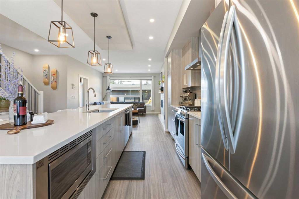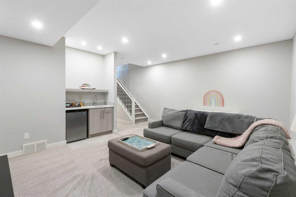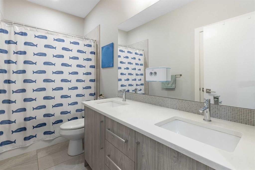 Nestled on an extra-wide, quiet street in the heart of Bowness, this semi-detached family home offers a sanctuary of modern luxury and thoughtful design. As you approach, its contemporary facade hints at the elegance within, a perfect blend of style and functionality. Step inside and be greeted by an open, airy main floor bathed in natural light from expansive west-facing windows. Wide-plank luxury vinyl flooring guides you through a seamless, open-concept layout, where every detail has been meticulously crafted. The gourmet kitchen is the true heart of the home, designed for both culinary artistry and casual gatherings. A stunning, oversized center island with chic pendant lighting and seating for five beckons you, while gorgeous quartz countertops and abundant cabinetry provide an effortless and elegant workspace. The dining area, illuminated by designer lighting, flows effortlessly into the inviting living room, where custom built-ins provide storage and a sophisticated focal point, drawing your eye to the cozy gas fireplace with its elegant wood mantle. Tucked away discreetly is a convenient two-piece powder room for guests, and a dedicated rear mudroom with built-in storage. The journey continues upstairs to a private haven. The generous primary suite is a true retreat, featuring a spacious walk-in closet and a five-piece ensuite that feels like a personal spa. Indulge in the soothing soaker tub or the separate glass-enclosed walk-in shower with a bench, all complemented by dual vanities. Two additional well-sized bedrooms, each with a closet, share a five-piece bathroom with dual vanities. For ultimate convenience, the upper-level laundry room is a dream, complete with ample storage, a sink, and hanging racks. The fully finished basement adds even more living space, with high ceilings that create an open and welcoming feel. Here, you’ll find a spacious family room with a wet bar, perfect for movie nights or entertaining. A fourth bedroom with a walk-in closet and a full four-piece bathroom provide ideal space for guests or a growing family, with an additional storage/utility room. Step outside to your sunny, southwest-facing backyard—an entertainer’s paradise. The patio area is the perfect spot for summer barbecues, while the included playset ensures hours of fun for the kids. After a long day, you can unwind in the relaxing sauna. Parking is a breeze with a detached rear garage and additional parking available out front. This custom-built home is more than just a house; it’s a lifestyle. Its prime location places you moments away from Bow River pathways, Bowmont Park, Market Mall, and Winsport, with quick access to the mountains and downtown. This home offers the perfect blend of peaceful surroundings and urban convenience. Don’t miss your chance to call this move-in-ready gem your own -book your Showing today!