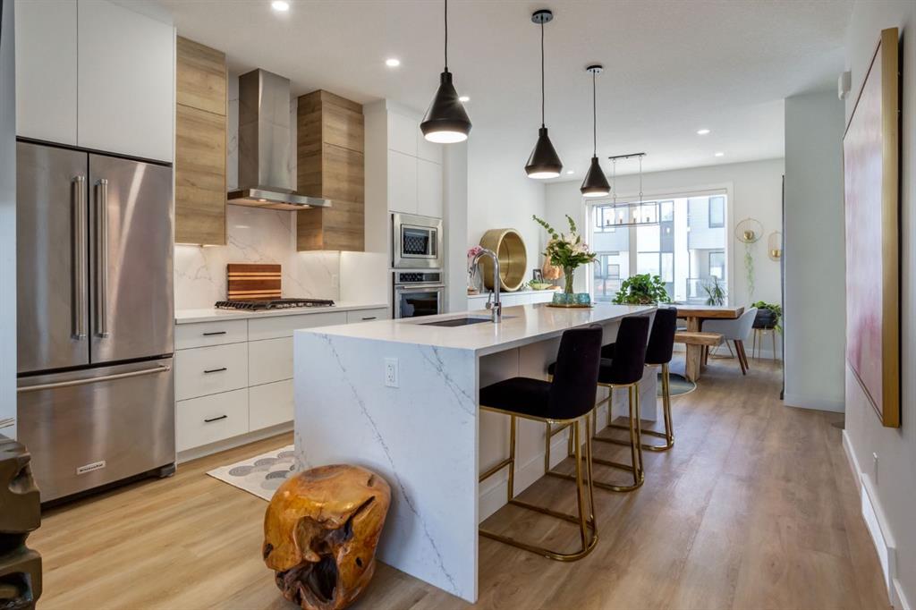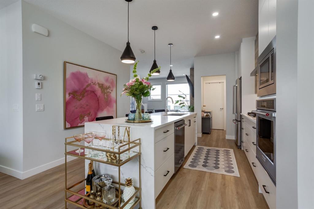 CHECK OUT NEW PRICE!!! Don't wait months to build! This stunning townhome is built by Streetside in the amazing new community of Harmony, and is practically brand new! Being just a short drive west of Calgary, the location is perfect for those who want the rural feel with city amenities!. Featuring two bedrooms and three bathrooms, this pristine townhouse has everything you are looking for! Walking in on the main level you are greeted by a cute flex space and separate foyer, plus storage room and closet. Up the stairs to your main level is a bright and open floor plan where your living room blends seamlessly into your kitchen and onto the dining room, perfect for entertaining. Your kitchen features stainless steel appliances, quartz countertops and gas cooktop. Off of the kitchen is a unique coffee station room and walk in pantry. Walk over and enjoy your morning coffee on the balcony just off the dining room. The main floor is completed by a 2 piece bathroom and upgraded gas fireplace in the living room. Headed to the upper level, you will find two large bedrooms, each with their own ensuite. The primary retreat features a 5 piece bathroom with attached large walk-in closet and separate water closet, while the second bedroom boasts a 4 piece bathroom and walk in closet. The upper level is completed by a nice sized laundry and storage room. This unit comes complete with an attached 2 car garage. Harmony residents can spend the summers at the beach and nearby lake, and easy access in the winters to the mountains! With heaps of remaining new home warranty, a brand new growing community, this home is a must see! Don't hesitate and contact your realtor to book a showing today! It may not last too long......