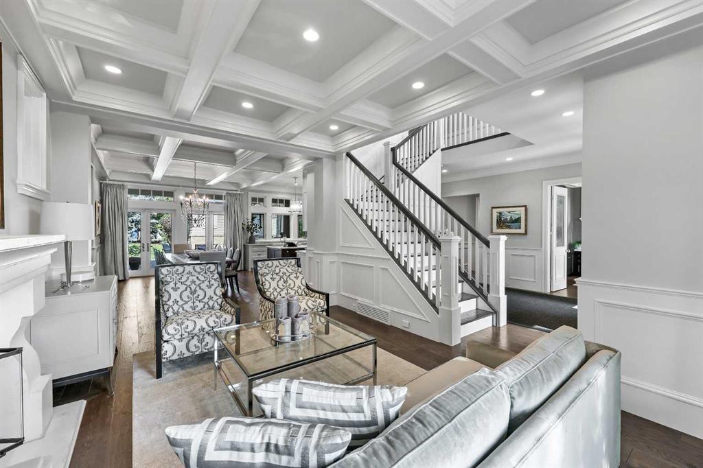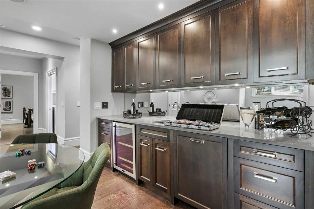 bar, bookcases, breakfast bar, built-in features, central vacuum, chandelier, closet organizers, crown molding, double vanity, dry bar, french door, granite counters, kitchen island, low flow plumbing fixtures, natural woodwork, open floorplan, pantry, separate entrance, soaking tub, steam room, stone counters, storage, sump pump(s), suspended ceiling, vaulted ceiling(s), walk-in closet(s), wet bar