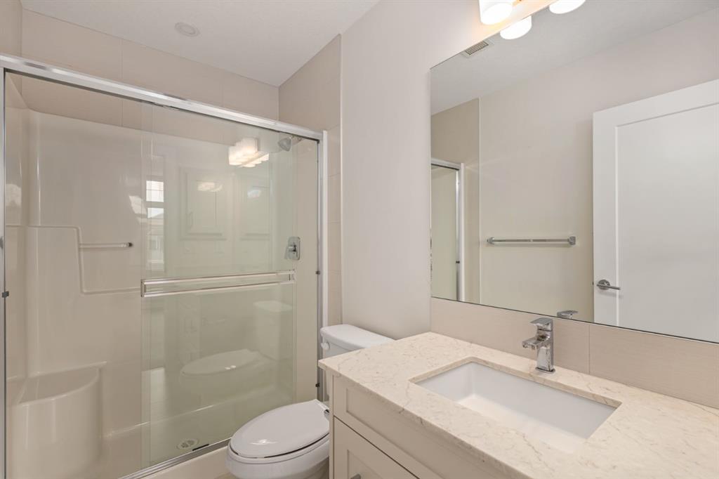 Experience luxury living in a fully upgraded almost 700 square foot top-floor unit in the prestigious lake community of Auburn Bay. Step into this bright, beautifully designed 2 bed 2 bath condo that embodies high quality and functional living with thoughtful design, soaring ceilings, and an open-concept layout. Boasting a modern chef’s kitchen with sleek quartz countertops, custom tile backsplash, stainless steel appliances including a chimney style hood fan, and a spacious island that doubles as your dining table, prep station, or home office hub. Step outside and onto the convenient covered West-facing balcony, with peaceful mountain views and a BBQ gas hookup—perfect for sipping coffee or evening relaxation.The primary suite includes double room closet and a spa-inspired ensuite with vanities, and glass shower. For maximum privacy, the other bedroom can be found on the opposite end of the unit, with an additional ensuite and roomy closet, perfect for guests or roommates. Additional highlights include luxury vinyl plank flooring, A/C, full-size washer/dryer in a dedicated laundry room with pantry, and a titled underground parking stall with attached storage locker. This pet-friendly complex is steps from Auburn Bay Lake, walking trails, schools, CO-OP, restaurants, public transit, and South Health Campus. It is also located mere minutes from the Seton YMCA and quick access to both Deerfoot and Stoney Trail for an easy commute. Whether you're buying your first home or investing, this pristine, well-located condo offers incredible value in a thriving community.