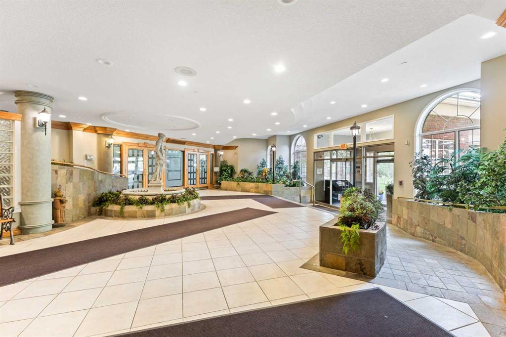 The layout is practical and generous: nine-foot ceilings, an open-plan living space, and a west-facing balcony overlooking the landscaped courtyard. The kitchen balances style and function with stainless steel appliances, a breakfast bar, garburator, and in-line water filter. A dedicated laundry room adds convenience, while the primary suite includes a private ensuite retreat.