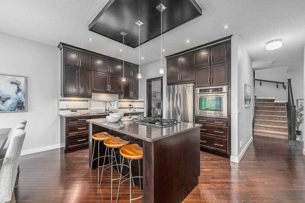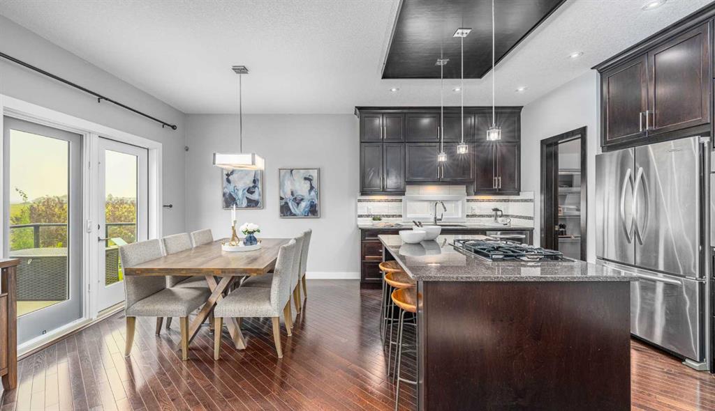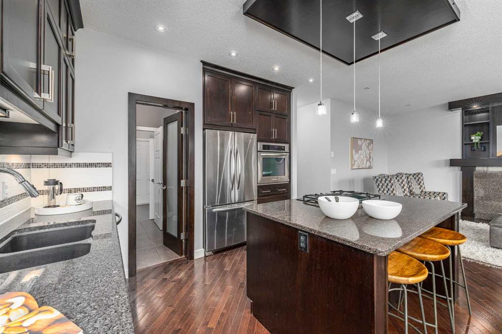 370 Williamstown Green is a beautiful walkout basement home on a quiet cul-de-sac, perfect for peace, privacy, and raising a family. The main floor offers a welcoming entrance that leads past your home office into a comfortable open-concept living area, complemented by a gas fireplace and large windows with views of Nose Creek Park. The gourmet kitchen is well-appointed with a large island and breakfast bar, a gas cooktop, ample cabinet space, stainless steel appliances, and a walk-through pantry.
