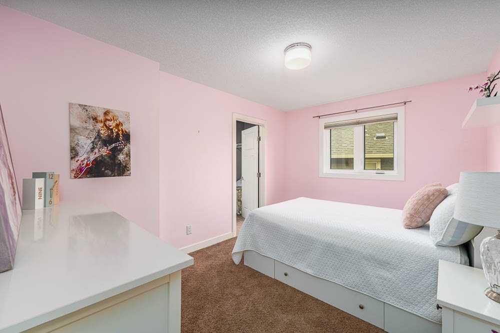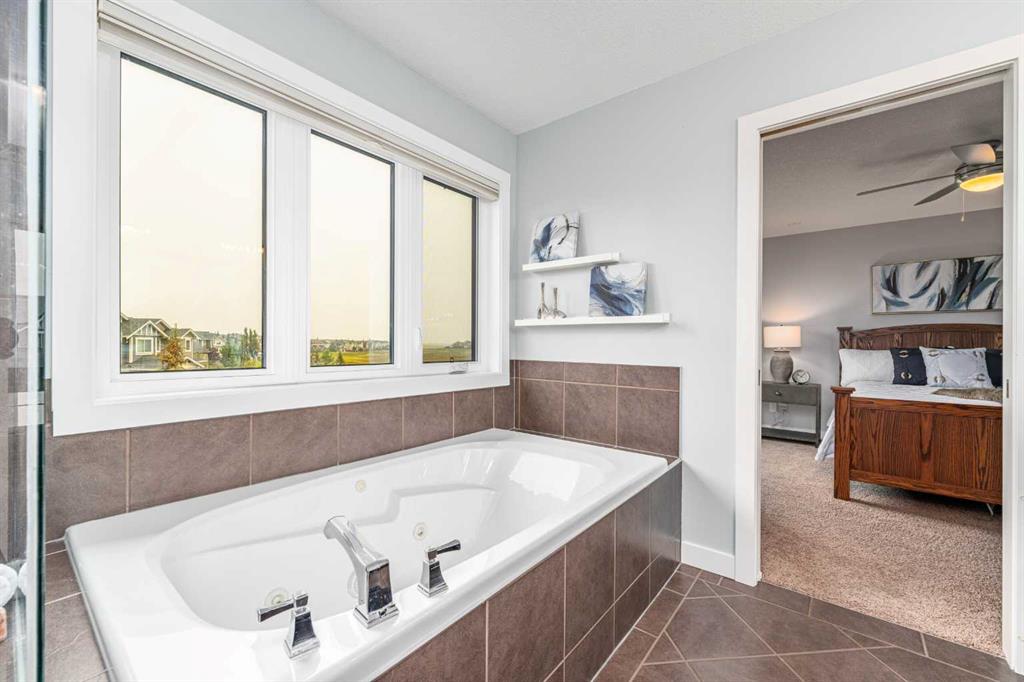 The dining area features double doors opening to a panoramic west-facing patio—ideal for watching evening sunsets or the kids playing in the spacious backyard. Upstairs, you’ll find a bright bonus room perfect for entertaining, a gorgeous primary bedroom with more views, a spa-like ensuite, and a large walk-in closet. The second and third bedrooms are generously sized, with one offering an additional walk-in closet and a window for morning sun. Completing the top floor is a second full bathroom and convenient upstairs laundry.