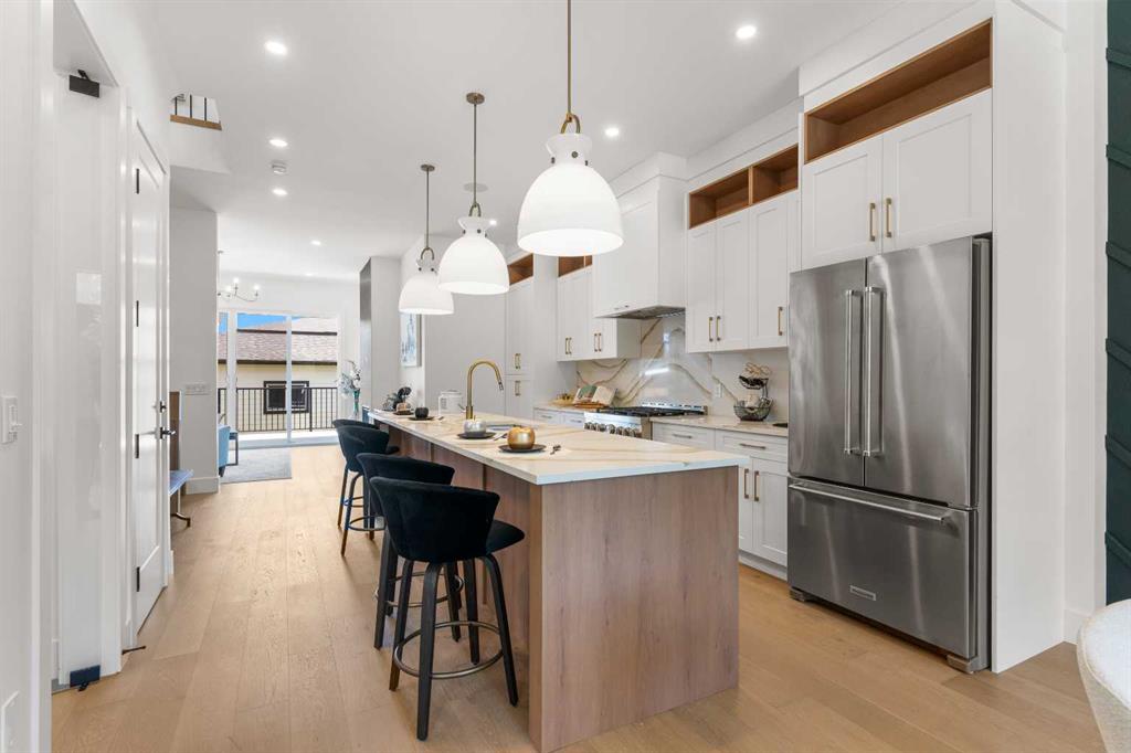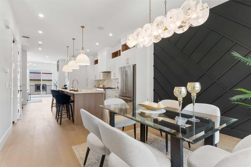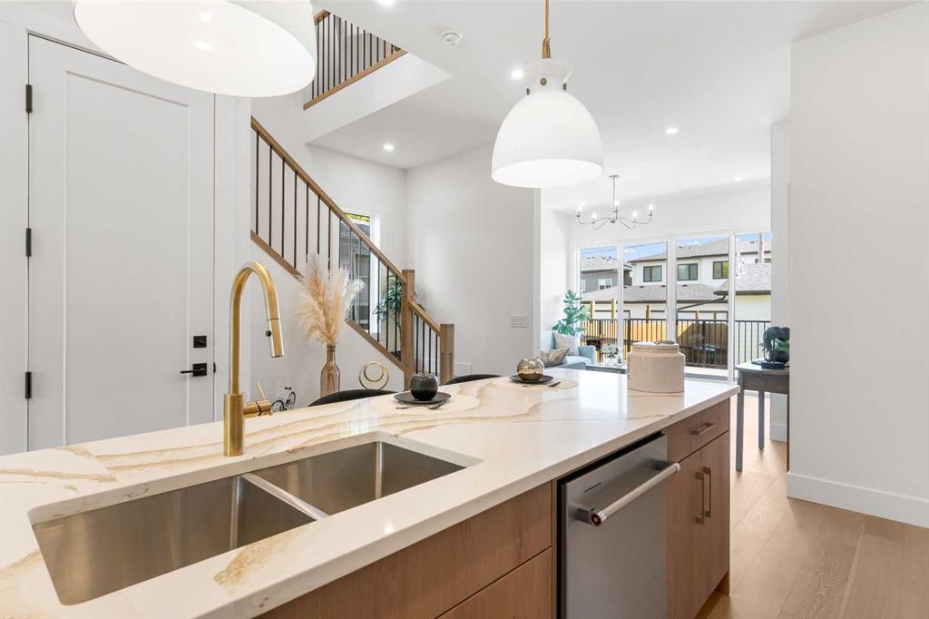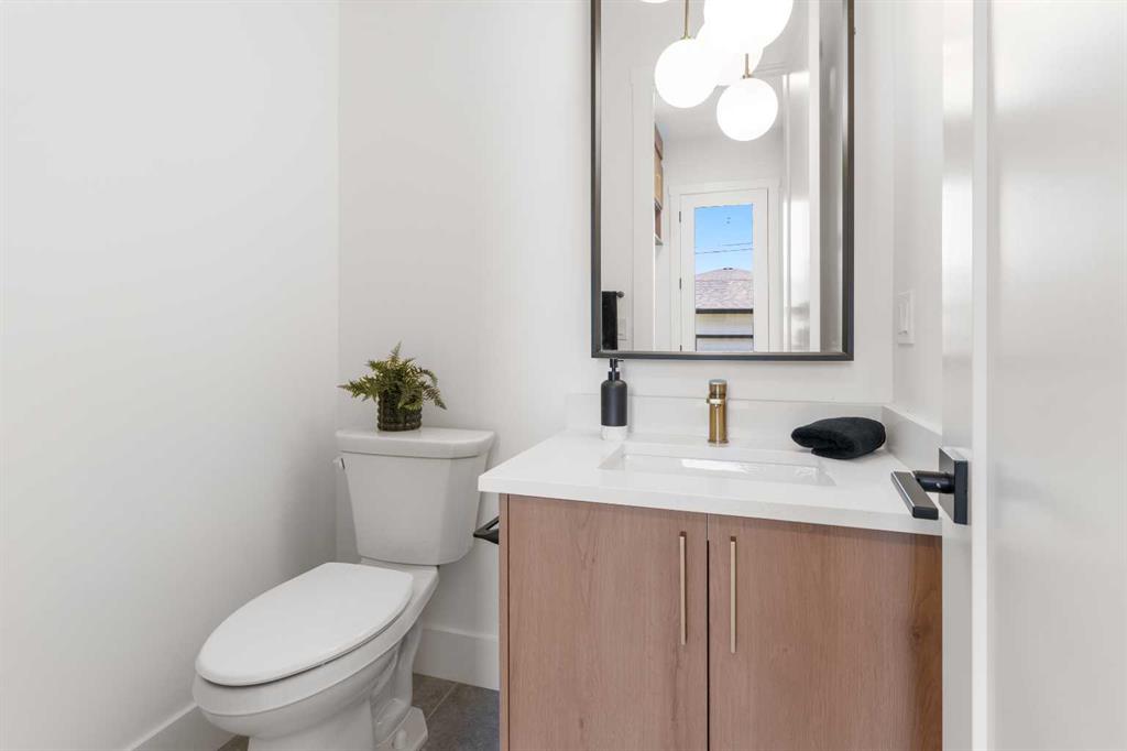 EXTENDED BASEMENT!! Welcome to one of Killarney’s most exceptional homes — a brand new infill offering nearly 2,000 SqFt of beautifully designed living space. Here, elevated style meets everyday comfort in one of Calgary’s most sought-after inner-city neighbourhoods. Thoughtfully crafted for both daily living and upscale entertaining, this home combines modern design, an intelligent open-concept layout, and unmatched functionality into one remarkable package. As you step inside, a beautiful formal dining area sets the tone for the home, flowing seamlessly into the gourmet kitchen anchored by a striking 12-foot quartz island. Designed for both relaxed mornings and upscale gatherings, this kitchen is a space where style and practicality come together effortlessly. Across from the kitchen, a bright and versatile home office offers the perfect place to focus or create. Beyond, the inviting living room showcases a cozy fireplace — perfect for those cold Calgary winters — and glass patio doors that open to a large rear deck, creating a smooth transition between indoor and outdoor living. A built-in mudroom with generous storage and a chic, tucked-away powder room add thoughtful functionality to the main level. Upstairs, the primary suite is a light-filled retreat with a vaulted ceiling, walk-in closet, and a spa-inspired ensuite featuring beautifully patterned floors, dual sinks, and a freestanding tub. Two additional bedrooms, a stylish main bath, and a conveniently located laundry room complete the upper level. Downstairs the extended LEGAL BASEMENT SUITE (pending final approval by the city) is a standout feature, offering even more flexibility with a bright and spacious area. This level includes a full kitchen, open living area, two private bedrooms, a flex room, and dedicated laundry room. Whether envisioned as an income-generating opportunity, a comfortable space for multi-generational living, or an inviting private retreat for guests, this space offers unmatched versatility without compromising style. The property is complete with a double detached garage and is ideally situated on a paved back alley, offering both convenience and functionality. With its elegant finishes, well-planned layout, abundant natural light, and a location just steps from parks, schools, amenities and quick connections to downtown, this home is more than just beautiful — it’s a smart investment in style, comfort, and long-term value.