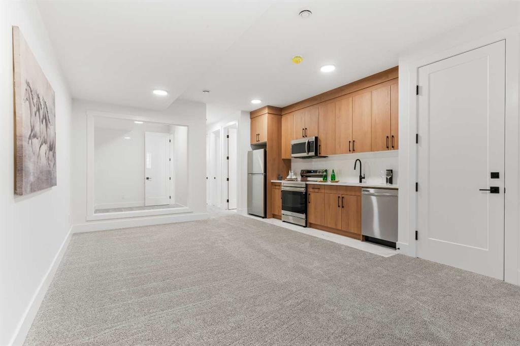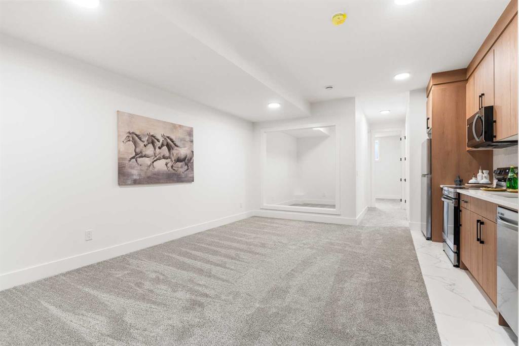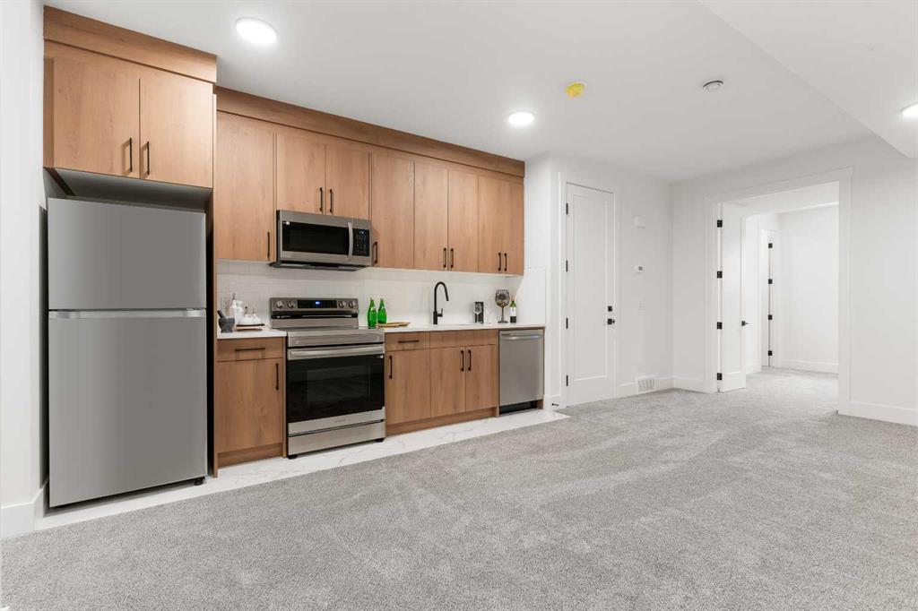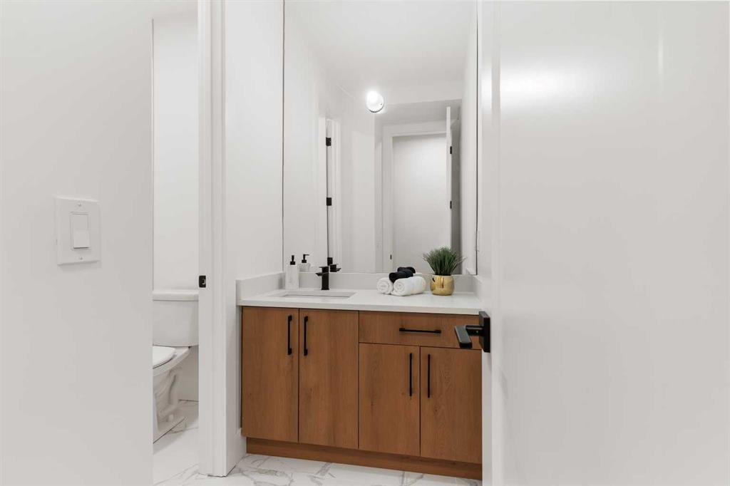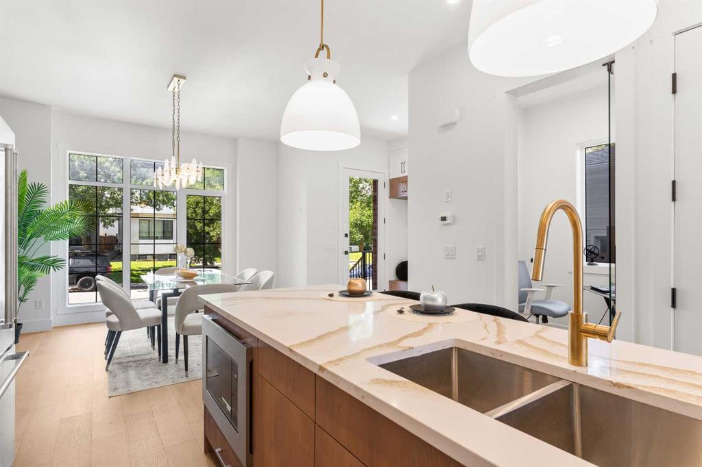 EXTENDED BASEMENT!! Welcome to one of Killarney’s most exceptional homes — a brand new infill offering nearly 2,000 SqFt of beautifully designed living space. Here, elevated style meets everyday comfort in one of Calgary’s most sought-after inner-city neighbourhoods. Thoughtfully crafted for both daily living and upscale entertaining, this home combines modern design, an intelligent open-concept layout, and unmatched functionality into one remarkable package. As you step inside, a beautiful formal dining area sets the tone for the home, flowing seamlessly into the gourmet kitchen anchored by a striking 12-foot quartz island. Designed for both relaxed mornings and upscale gatherings, this kitchen is a space where style and practicality come together effortlessly. Across from the kitchen, a bright and versatile home office offers the perfect place to focus or create. Beyond, the inviting living room showcases a cozy fireplace — perfect for those cold Calgary winters — and glass patio doors that open to a large rear deck, creating a smooth transition between indoor and outdoor living. A built-in mudroom with generous storage and a chic, tucked-away powder room add thoughtful functionality to the main level. Upstairs, the primary suite is a light-filled retreat with a vaulted ceiling, walk-in closet, and a spa-inspired ensuite featuring beautifully patterned floors, dual sinks, and a freestanding tub. Two additional bedrooms, a stylish main bath, and a conveniently located laundry room complete the upper level. Downstairs the extended LEGAL BASEMENT SUITE (pending final approval by the city) is a standout feature, offering even more flexibility with a bright and spacious area. This level includes a full kitchen, open living area, two private bedrooms, a flex room, and dedicated laundry room. Whether envisioned as an income-generating opportunity, a comfortable space for multi-generational living, or an inviting private retreat for guests, this space offers unmatched versatility without compromising style. The property is complete with a double detached garage and is ideally situated on a paved back alley, offering both convenience and functionality. With its elegant finishes, well-planned layout, abundant natural light, and a location just steps from parks, schools, amenities and quick connections to downtown, this home is more than just beautiful — it’s a smart investment in style, comfort, and long-term value.