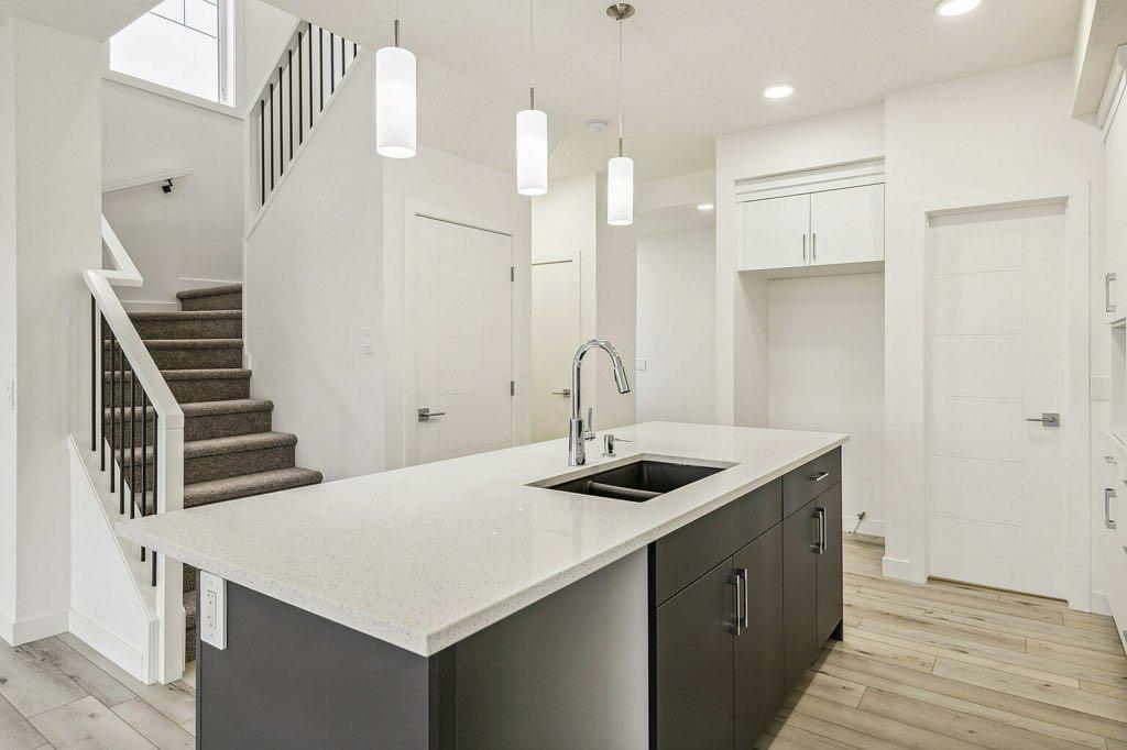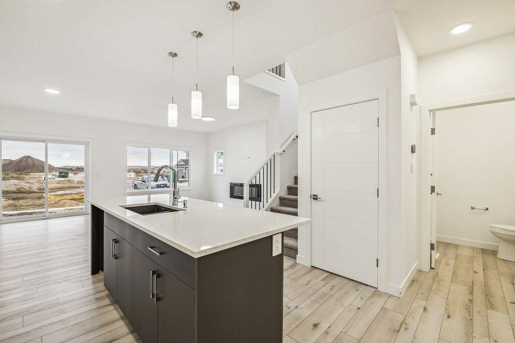 DECEMBER 22nd COMPLETION * LOOK MASTER BUILDER has gone above and beyond with a long list of upgrades, creating a home designed to impress from the moment you step inside. With its wide open layout, thoughtful details, and modern finishes, this home is built for both everyday living and entertaining. The chef’s kitchen is the heart of the home, featuring an 8 ft. island with a full-length eating bar and quartz countertop, walk-through pantry, stylish two-tone shaker cabinetry with soft-close doors and drawers, and a Blanco Silgranit sink with soap dispenser. Upgrades include rough-ins for a built-in microwave and chimney hood fan, two sets of deep pots and pans drawers, 36” upper cabinets, and a gas line to the stove. Overhead, three elegant pendant lights complete the look in the great room, you’ll enjoy a 50” fireplace with mantle, an in-wall TV conduit, and bright triple-pane windows with custom “Zebra Blinds.” Every detail has been carefully chosen, from the Berkley modern interior doors for added sound reduction to the sleek black hardware and striking metal spindle staircase. The main floor is finished with durable QUEST XL Luxury Vinyl Plank flooring, with vinyl tile in upper bathrooms and laundry. Upstairs, the private primary suite has a double-sink quartz vanity, freestanding tub, oversized tiled shower to the ceiling, and a spacious walk-in closet. The second floor also includes a large laundry room, convenient tech space, two more stylish bathrooms with upgraded tile and vanities, and a huge bonus room perfect for family movie nights. This home is as functional as it is beautiful, with a mudroom featuring a built-in bench and hooks, clean air HRV system, humidifier, high-efficiency 2-stage furnace, 80-gallon hot water tank, Ecobee Smart Thermostat, 200 AMP electrical panel, and plumbing rough-ins for a future basement bathroom, laundry, and kitchen. Exterior highlights include a Prairie elevation with stone accents and a $500 front yard landscaping certificate. Possession day will feel like moving into a dream home where every detail has been thought of for you. Photos are representative. RMS measurements are taken from Builder’s blueprints.
