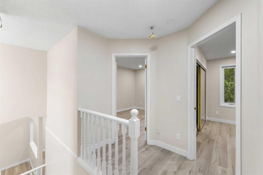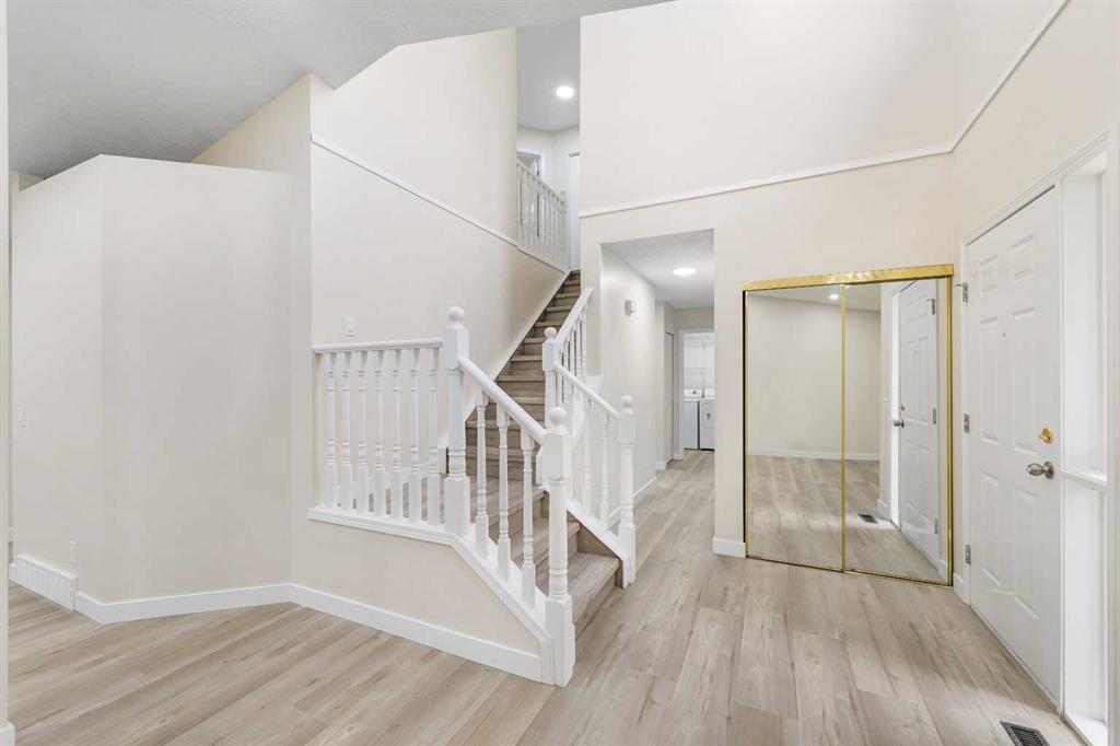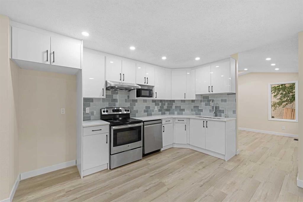 ** Gorgeously Renovated **Brand New: Flooring, Kitchen Quartz Countertops & Stainless Steel Appliances, Gloss Finished Full Height Cabinetry, Electric Fireplace, Custom Built-ins, Recessed Lighting and more! 1,656 SqFt | Open to Below Ceilings | Expansive Living Space | Large Windows | Open & Functional Floor Plan | Bay Windows Breakfast Nook | Main Level Laundry | 3 Spacious Upper Level Bedrooms & 2 Baths | Finished Basement with Bedroom & Den | Great Entertainment Space | Basement 3pc Bath | Ample Storage | Incredible Backyard | Deck | Patio | Fully Fenced Backyard | Firepit | Rear Lane | Front Double Attached Garage & Driveway | LOCATION LOCATION LOCATION! Welcome to your beautiful 2-storey family home that was newly renovated with stunning upgrades. Open the front door to a foyer with open to below ceilings, your brand new LVP flooring and closet storage to keep the space tidy. The main level has both an open and functional floor plan giving you flexibility with your living space. The front living room is spacious and bright with street facing windows. Separating the living and dining rooms is a wall with an arch cutout adding openness, depth and style to this space. The dining room is a step into the kitchen where you have an open floor plan concept kitchen, breakfast nook and family room. The kitchen is fully upgraded with sparkling quartz countertops, full height gloss finished cabinets and brand new stainless steel appliances. The breakfast nook has character bay window that overlooks the beautiful backyard. Off the nook is door that leads to the deck making indoor/outdoor living easy! The family room is centred with an electric fireplace framed with built-in shelving for all your personal photos and decor. The main level is complete with a 2pc powder room and laundry room. Upstairs has 3 bedrooms all with the new LVP flooring! The primary has a private 4pc ensuite bath with a tub/shower combo. Bedrooms 2 & 3 upstairs share the main 4pc bath. Downstairs, the finished basement has another bedroom, 3pc bath and a den. The bedroom is a great size! The den is a great flex space for a home office or short stays with overnight guests. The rec room provides you with a space for evening entertainment! The utility room is located downstairs and also has storage space. Outside is your incredible backyard with space for both living, dining and for the kids to play! The deck is a great space for a BBQ while the concrete patio is made for an outdoor dining or lounge set. In the middle of your lawn is a stone firepit for those cool evenings where you want to relax outside. Even though this home has a front attached garage, you also have a rear lane! The location of this home is perfect; second to Country Hills Blvd NE for an easy commute to Deerfoot and Stoney Trail. All shopping and amenities are down the street too. Hurry and book a showing at this gorgeous home today!
