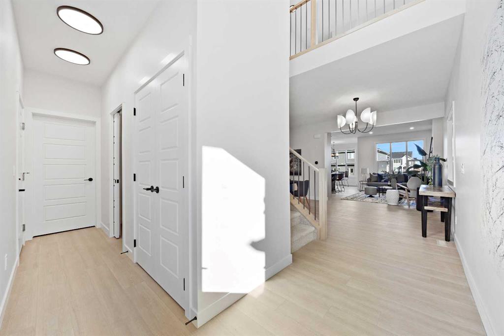 Welcome to the Montay in Cochrane’s Fireside community, offering 2,021 sq. ft. of living space with 4 bedrooms and 2.5 bathrooms. This home combines modern design with thoughtful upgrades that make day-to-day living easy. The main floor is anchored by a bright, open kitchen with quartz countertops, shaker cabinetry in Mistral with ebony wipe, a Blanco Silgranit sink in coal black, and a Boardwalk white matte backsplash. The island adds both seating and workspace, while the walk-through pantry and mudroom provide smart storage solutions. The connected dining, living, and great room spaces create the perfect setting for gatherings. Upstairs, the primary suite features a walk-in closet and private ensuite. Three additional bedrooms, a full bathroom, a versatile loft, and upper laundry complete the floor. Interior finishes include Cozy White luxury vinyl plank, Off Shore carpet, and an Origami White palette accented by fawn-stained railing. This home is built with flexibility in mind, featuring a side entry with basement rough-ins, a 9’ foundation, railing upgrades, and gas lines to both the range and BBQ. A double garage and rear lane access add convenience. Fireside is one of Cochrane’s most connected communities, known for its schools, local shops, and endless pathways that weave through parks and natural spaces. It’s a neighborhood designed for families and outdoor lifestyles, with quick access to Calgary and the mountains. Area size was calculated by applying the RMS to the blueprints provided by the builder.