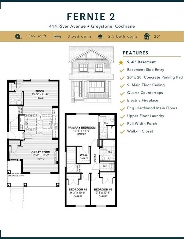 IMMEDIATE POSSESSION. BRAND NEW HOME by Douglas Homes, Master Builder in central Greystone, short walking distance to parks, the Bow River, major shopping & interconnected pathway system. Featuring the Fernie 2 with separate side entry on an R-MX zoned home site for POTENTIAL future lower level suite. NOTE: a secondary suite would be subject to approval and permitting by the city/municipality. This gorgeous 3 bedroom, 2 & 1/2 half bath home offers over 1360 sq ft of living space. This home is located on a River Avenue which provides immediate access to the interconnective pathway system, perfect for those looking for a outdoor lifestyle. Loads of Designer & upgraded features in this beautiful, open floor plan. The main floor greets you with 8' front door, soaring 9' ceilings, oversized windows, built-in niches & fireplace. Gleaming Hardwood floors flow through the kitchen, hall & nook adding a feeling of warmth & style. The two sided Kitchen is completed with Quartz Countertops, 42" Kitchen Cabinet uppers with decorative enclosed bulkhead, plenty of drawers including Pots & Pan drawers, twin accented beam ceiling detail, soft close doors & drawers, convenient tech space/desk with twin drawers & new stainless steel Kitchen appliance package. Upstairs you'll find a generous Primary Bedroom with Ensuite - Quartz Counter with undermounted sink & drawer, 5' shower with Designer tiled walls, private water closet all completed with ceramic tile flooring & large walk-in closet. The 2nd floor is completed by two good size additional bedrooms, main bath tub/shower combination with tiled walls, Quartz countertop, undermounted sink, drawer & ceramic tile flooring. You will love the convenience of 2nd Floor Laundry completed with ceramic floor tile. This is a very popular plan, great for young families, investors or the down sizers. Spacious, Beautiful and Elegant! The perfect place for your perfect home. Call today! Interior photos are from prior build & are reflective of fit, finish & included features. Note: Interior photos are for illustration purposes only. Actual interior colors/finishes, & upgrades may be different than shown & the Seller is under no obligation to provide them as such.