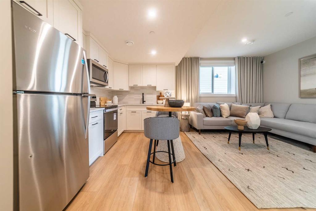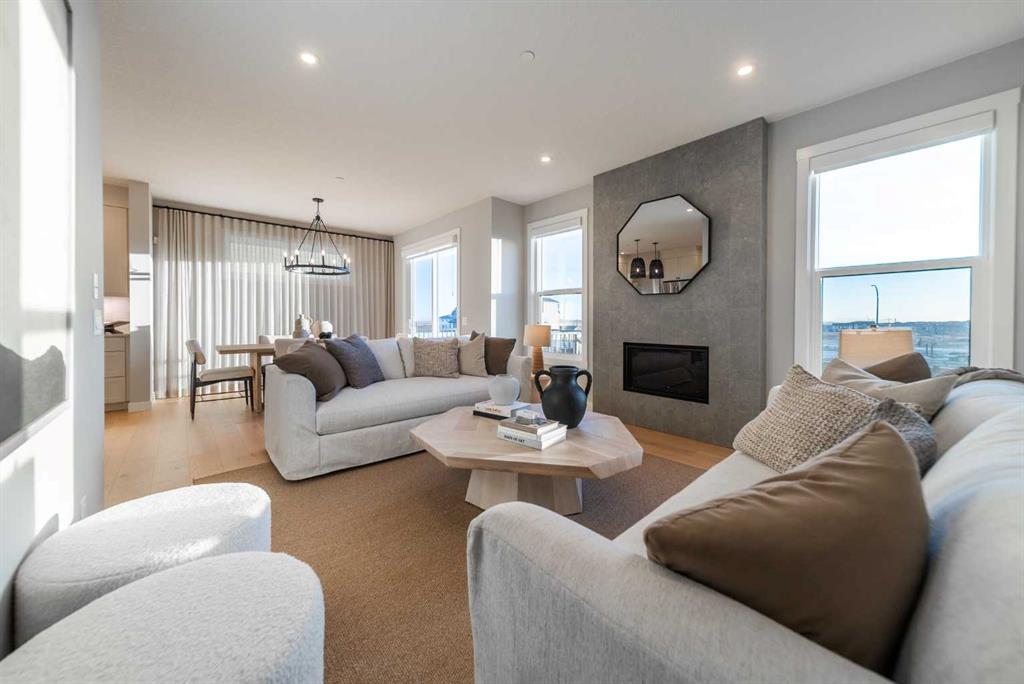 SHOW HOME FOR SALE! The stunning Purcell 26 show home is now for sale and this home offers it all! Situated on a large 4,700 ft2 conventional lot, this move-in ready home has been professionally designed to offer a timeless and luxurious space that is perfect for a growing family, investors or multi-generational living. At over 3,200 square feet of developed living space, the home features a home office, 2 living areas, 3 bedrooms, 2.5 bathrooms + a full legal and separate 2 bedroom basement suite! Oak hardwood flooring flows throughout the main level of the home - offering an elevated design with timeless natural wood floors. The central kitchen features white shaker cabinets, built-in range hood, built-in wall oven & microwave, gas cooktop and a large island quartz island with end-cap detailing. Custom lighting throughout elevates the space with those special design touches not typically found in a new home. An expansive walk-through pantry off of the kitchen leads to the oversized mud room for everyday convenience. The dining and living areas span across the back of the property, with walls of windows that allow natural light to pour through the space all day long. A central gas fireplace complete with floor-to-ceiling tile surround is anchored by two large windows, creating the perfect symmetry while offering a natural fireplace for cozy winter nights. Chevron flooring detail in the main level off space, custom window treatments and built-in features are just some of the upgrades specific only to a show home. A grand foyer, two closets, including a walk-in closet and a 2pc powder room complete the main level. Natural wood and iron railings lead to the upper level, where the central bonus room separates the primary bedroom from secondary rooms. Custom wallpaper fills the primary suite with vaulted ceilings and added windows providing more natural light. The primary suite features a tiled walk-in shower with 10mm glass, soaker tub, dual vanity with 3" quartz countertop edge and a private water closet. Two more bedrooms, each complete with custom window coverings and wallpaper features, a 5pc main bathroom and laundry room with countertop and built-in storage complete the upper level. A separate side entrance provides access to the self-contained legal 2 bedroom basement suite. A large kitchen with dining area and full living room provide a comfortable living space for two. Completing the suite are two bedrooms, a full bathroom, laundry closet and large windows that provide more natural light than you'd normally find. Custom window treatments & lighting, wallpaper features, central A/C, landscaping and more are just some of the benefits of buying a new show home. This brand new home is move-in ready and includes Alberta New Home Warranty - allowing you to purchase with peace of mind. This is your opportunity to purchase a one-of-a-kind home that has been beautifully designed throughout!