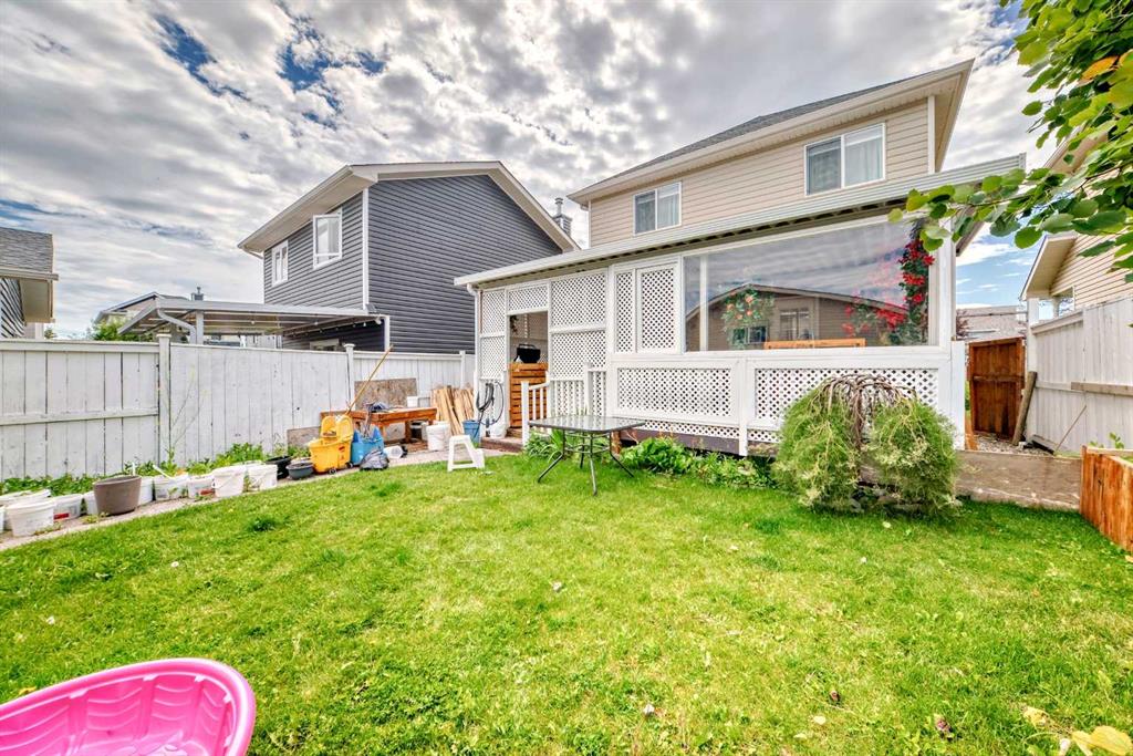 Great location of this well maintained home, a few blocks from playground, bus stop, schools and shops, approximately 5 minutes drive to the c-train station and malls. A newer concrete walk pad leads you to the home, and as you get in, you'll be greeted of its nice layout with laminate floorings all through out the main level. The kitchen is equipped with stainless appliances, this includes a newer DISHWASHER bought last 2023, basement WASHING MACHINE bought last 2024, updated WINDOW BLINDS in Living Room and Master Bedroom which is remotely operated. In the Upper Level, It offers 3 good sized bed rooms and 1 full bath room with jetted tub in (as-is condition), also with laminate flooring through out. ROOFS and SIDINGS was replaced last 2023. In the FULLY DEVELOPED basement, it offers a family room, 1 bed room and a 3 pcs bathroom. At the back yard, you will be delighted by its huge COVERED DECK that protects you from rain or snow while cooking and also its OVER SIZED Double Detached Garage with access from the graveled back lane. Note: Seller has 2 small cute dogs but be remove during showings. So What you're waiting? Call your favorite realtor now and book your showing!!