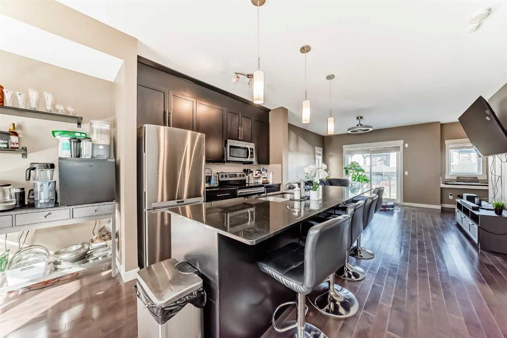 Showing and backup offer is available during pending. MODERN END UNIT | 2012 BUILD | 3 PARKING NEAR BY OPTIONS | DOUBLE GARAGE | GREAT LOCATION | FLEX ROOM + DEN | FULLY FINISHED. This move-in ready townhouse in Skyview Ranch combines modern design, functional space, and one of NE Calgary’s most convenient locations—all at outstanding value. Well maintained property, built in 2012 but feels like 2022. Tt’s bright and welcoming with windows on 3 sides and no front/back neighbours. The entry level offers a double attached garage (brand-new door), storage, and a versatile flex room—ideal as a gym, office, hobby space, or bedroom—plus a private front patio. The main floor impresses with a spacious great room, dining area, half bath, and a chef’s kitchen featuring quartz counters, large island, upgraded cabinets, stainless steel appliances, OTR microwave & under-mount sink. Step onto the east-facing deck for BBQs or summer evenings. Upstairs boasts 2 bedrooms including a primary with ensuite, another full bath, an office/den and a brand new set of washer/dryer. Walk to schools, parks, pond & playgrounds, with fast access to Stoney, Deerfoot, Airport & CrossIron. A 3-minutes walk to the bus station. A stylish newer home in a prime location—an exceptional opportunity you don’t want to miss.