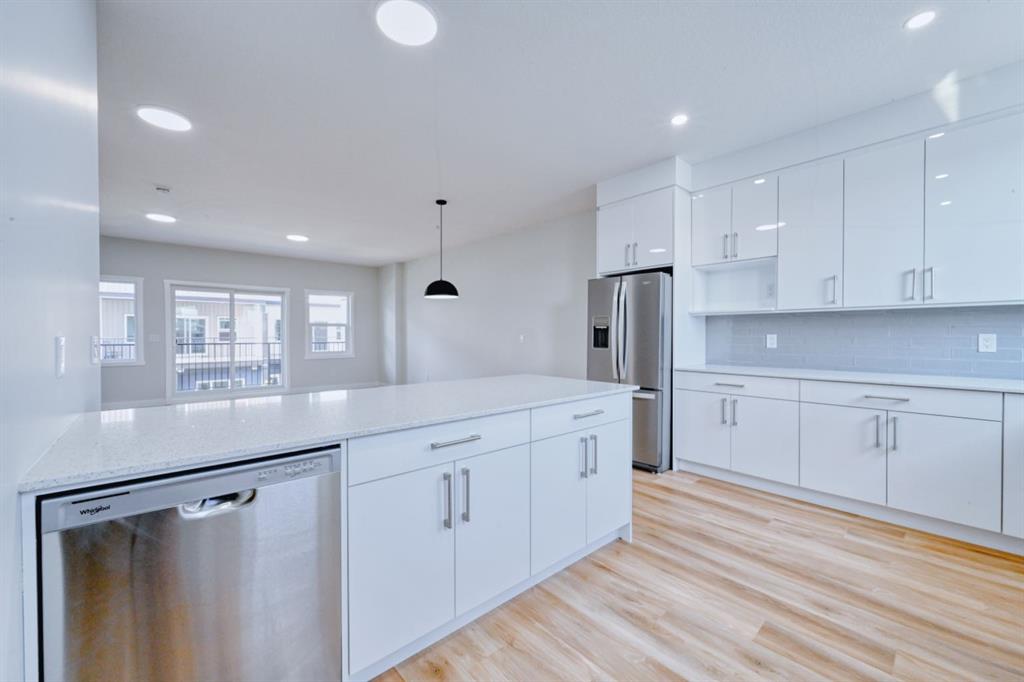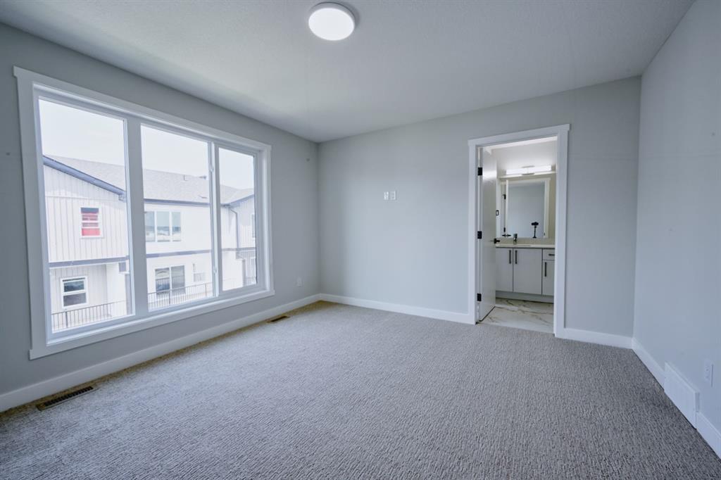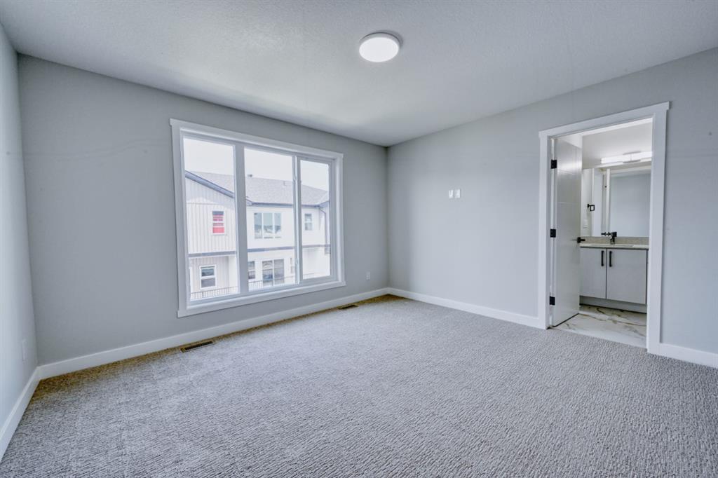 Brand new three-storey townhome in Cornerstone offering 4 bedrooms, 3.5 bathrooms and a spacious double attached garage. Excellent location in the complex across from a landscaped common area. The main floor includes a bedroom with full ensuite, ideal for guests or home office. The second floor features an open-concept layout with a large kitchen and pantry, generous dining area and bright living room with access to a balcony overlooking the courtyard. The third floor offers a primary suite with walk-in closet and ensuite, plus two additional bedrooms and a full bathroom. Conveniently located close to major highways, shopping, schools, parks and transit. A functional and well-designed home in a growing community