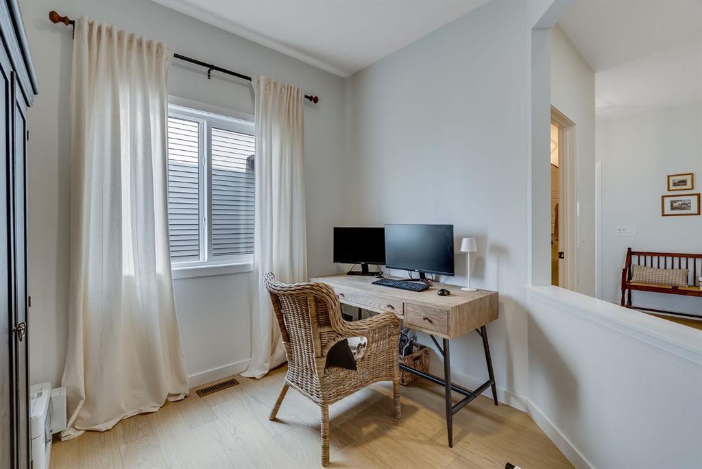 With just over 2,300 square feet, every detail of this residence has been crafted for modern family living. The main floor opens with warmth—an inviting office for those work-from-home days, and a kitchen that blends timeless style with everyday function. Two-tone cabinetry, high-end stone countertops, premium appliances, and a built-in walkthrough pantry with space for a wine fridge make this the true centerpiece of the home.