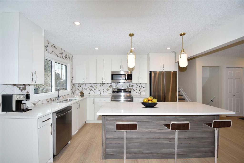 Welcome to this beautiful home in the desirable West Haysboro neighborhood. This renovated residence combines modern updates with classic charm, situated on a quiet street with mature trees. The moment you arrive, you’ll notice its inviting and welcoming feel. Inside, the open and functional layout offers nearly 1,500 square feet of living space, with three good-sized bedrooms and two full bathrooms. The interior is bright with large windows and pot lights for a comfortable atmosphere. Custom finishes are found throughout, including luxury vinyl plank flooring, quartz countertops, a stylish backsplash, and custom millwork. The living room features a fireplace, creating a cozy focal point. The kitchen has been fully updated with high-end appliances, making cooking a pleasure. The private, south-facing backyard is perfect for relaxing or entertaining guests. The home also includes an oversized double garage, providing plenty of room for parking (5 car parking) and storage. Major upgrades like a high-efficiency furnace, hot water tank, roof and windows have been completed, so you can move in without any major concerns.