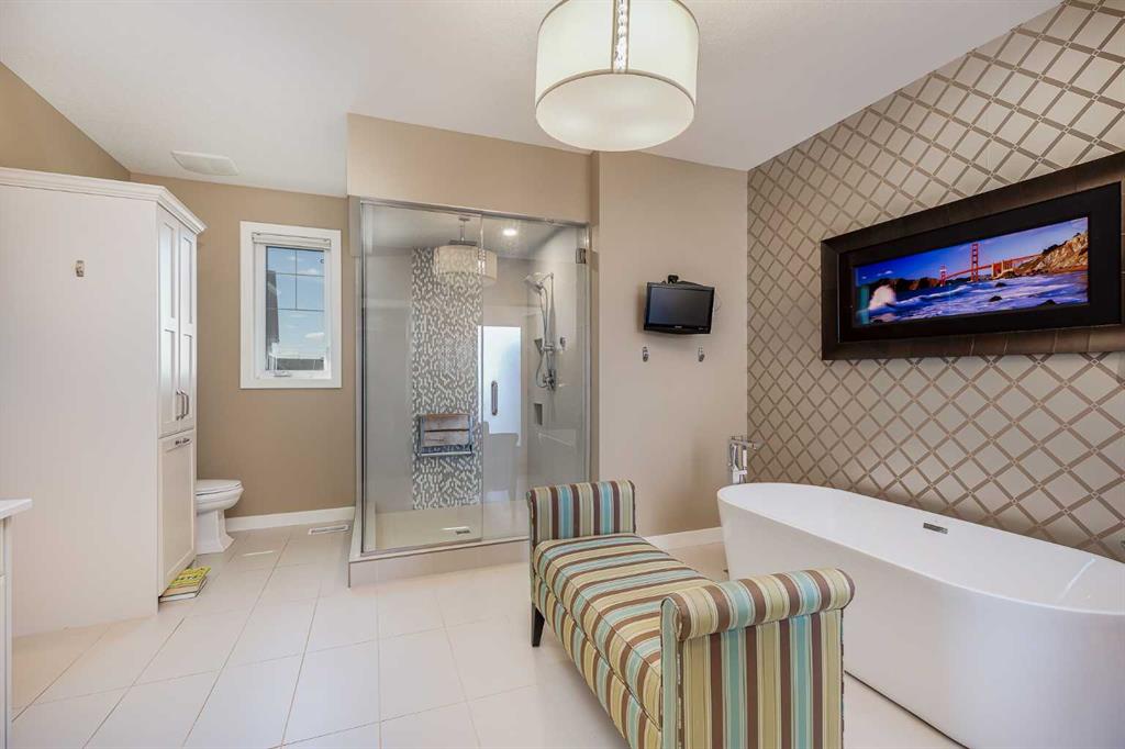 Upstairs, the main wing continues the story of family living, with three generous bedrooms and a primary suite that’s nothing short of a retreat. A 7-piece ensuite pampers with a freestanding soaker tub, dual vanities, a glass-enclosed shower, and even an outdoor shower—luxury with a dash of adventure.