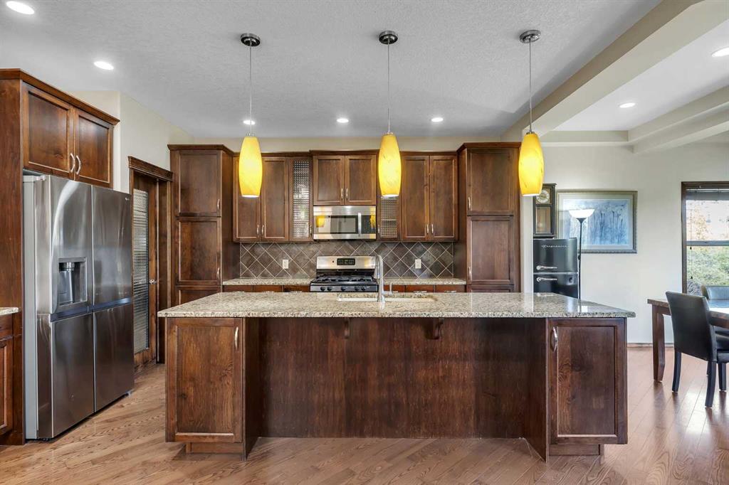 126 Tuscany Summit Heath NW – Where Nature Meets Refined Living. Perched in the heart of one of Calgary’s most sought-after communities, this remarkable home offers more than 3,200 sq. ft. of thoughtfully designed living space, blending comfort and sophistication with the tranquility of nature. Set on a 35’ x 117’ lot, the property backs directly onto a scenic ravine with a pathway and park, providing both privacy and a stunning backdrop year-round. Step inside to a welcoming foyer with a custom built-in closet that opens to a bright front office—perfect for today’s work-from-home lifestyle. The main living area impresses with its warm, traditional gas fireplace and oversized windows that frame serene views of the ravine. The kitchen features rich shaker-style cabinetry, granite countertops, a gas stove, microwave hood fan, and a central island with breakfast bar, making it the heart of the home for both casual meals and lively entertaining. Upstairs, retreat to a spacious primary suite complete with a walk-in closet and a five-piece ensuite showcasing granite counters and a corner soaker tub. Two additional bedrooms, a full bath, a large bonus room (currently used as a bedroom), and a convenient laundry room complete the upper level. The fully finished walkout basement—with 9-foot ceilings—extends the living space and includes a fourth bedroom with laundry, a three-piece bath, second laundry, wet bar, and electric baseboard heating, offering flexibility for guests, extended family, or an independent living setup. Step outside to a large deck with stairs leading to a landscaped backyard that opens directly to the ravine pathway. Built-in speaker system in the main floor, bonus room, ensuite and rear deck. Whether it’s morning walks, evening strolls, or family playtime at the park, this setting truly brings outdoor living to your doorstep. Located in vibrant Tuscany, residents enjoy close proximity to schools, shopping, transit, and major routes including Stoney Trail and Crowchild Trail. This is more than a home—it’s a lifestyle opportunity rarely available.