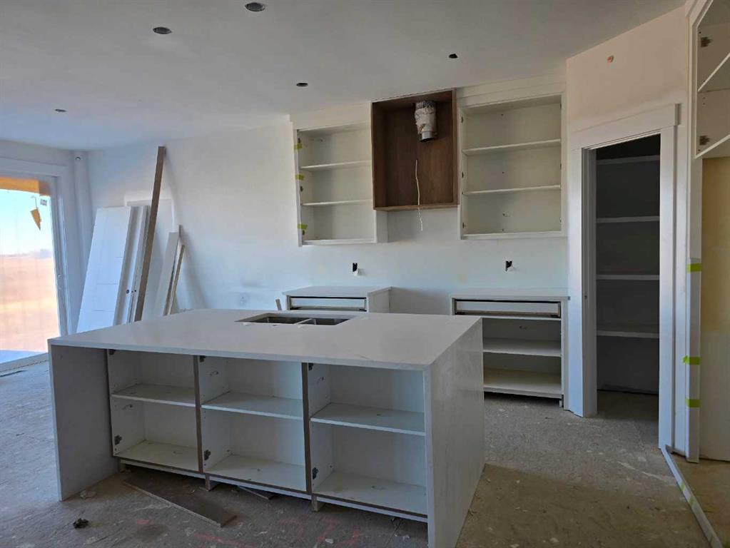 ELIGIBLE FOR FIRST HOME BUYERS GST REBATE. This 1,888 sq. ft. walkout bungalow offers a well-planned layout with space for family living and entertaining. The main floor features an open-concept design with soaring vaulted ceilings and oversized windows that bring in plenty of natural light and highlight the canal views behind the home. The kitchen is equipped with a walk-in pantry, abundant cabinetry, and generous counter space, making meal prep and storage easy. The primary suite is set apart for privacy and includes a five-piece ensuite with dual vanities, a soaker tub, a separate shower, and built-in storage. Two additional bedrooms on the main floor provide flexibility for family, guests, or a home office. A second full bathroom is conveniently located nearby. The living room and primary bedroom both open onto a full-length deck, perfect for enjoying the outdoors. The walkout basement extends the living space with two large bedrooms, a full bathroom, and a rec room that can accommodate media, games, or hobbies. Large basement windows keep the space bright and inviting, with direct access to the backyard and canal. Practical features include a side-drive triple garage with plenty of parking and storage options. Outside, the backyard and lower patio provide additional outdoor living areas with a scenic, peaceful backdrop. Located in Lakes of Muirfield, this property combines a quiet setting with easy access to nearby communities. Enjoy golf, walking paths, and a friendly neighborhood, all within a short drive of Strathmore, Chestermere, and Calgary.
